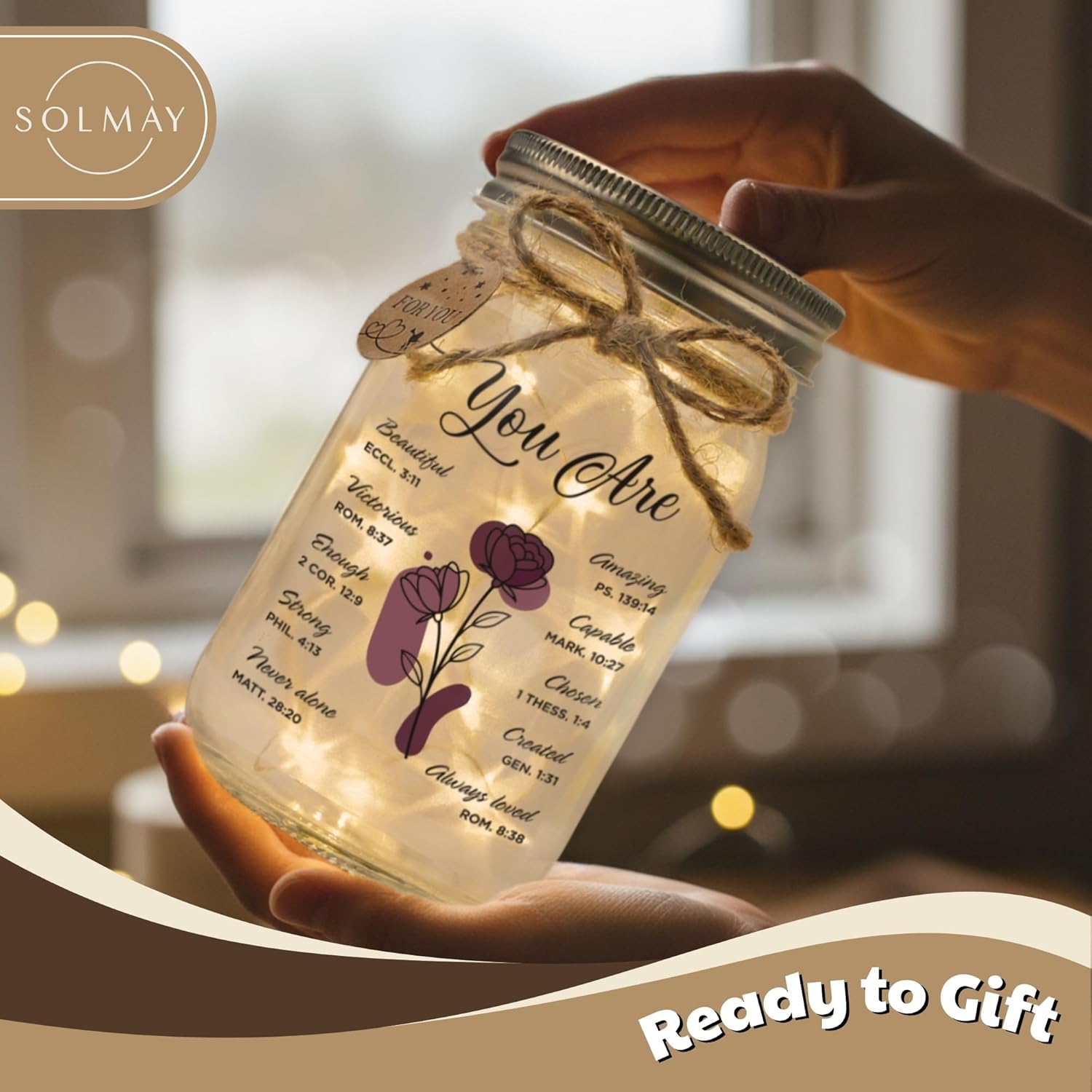 SOLMAY Birthday Gifts for Women โ Christian Inspirational Mason Jar Night Light with Bible Verse Quotes โ Thanksgiving & Christmas Gifts for Women โ Friendship & Gratitude Jar for Mom Best Friend