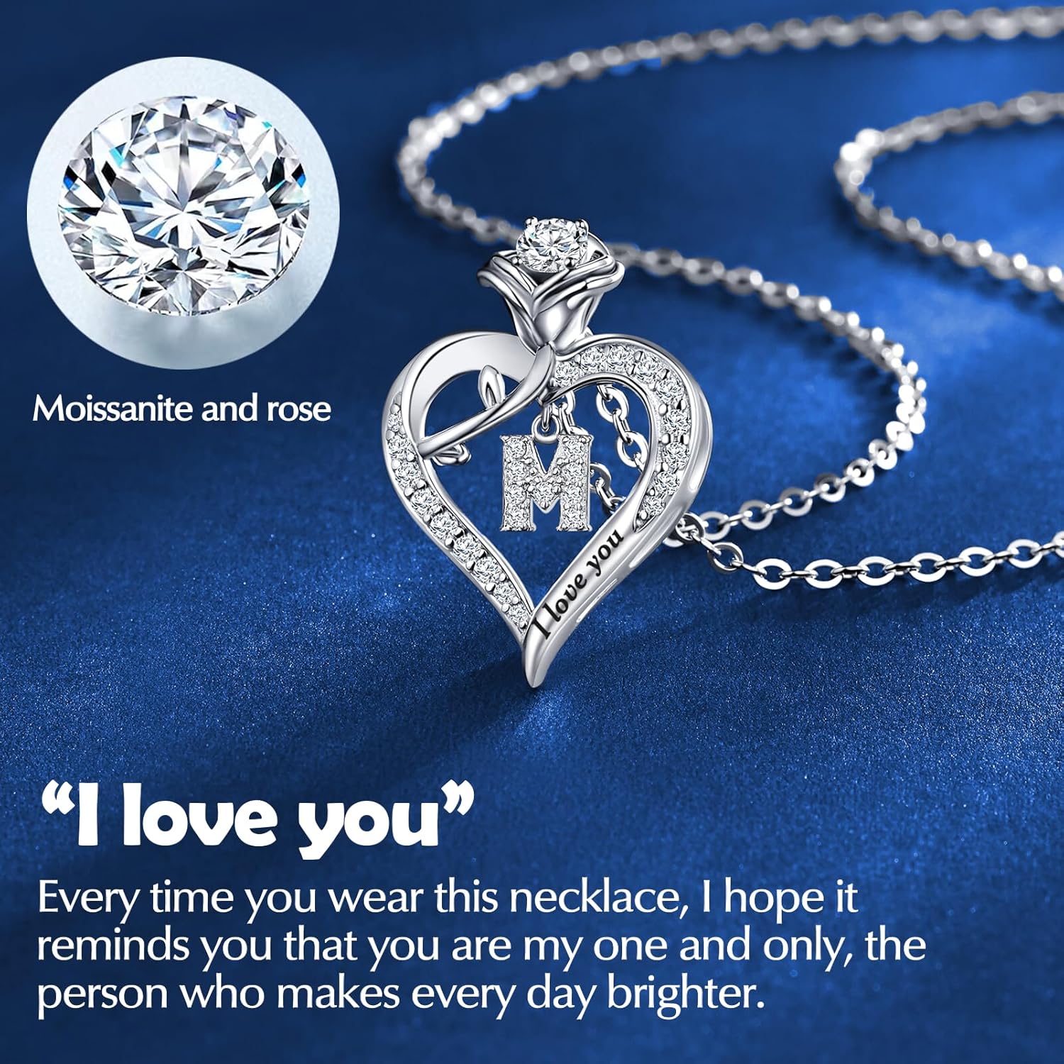 Rose Heart Pendant Necklace Gifts for Wife, Engraved 'I love you' Gift for Wife Girlfriend, Anniversary Birthday Eternity Jewelry Present for Women, Moissanite Necklace Gift for Her