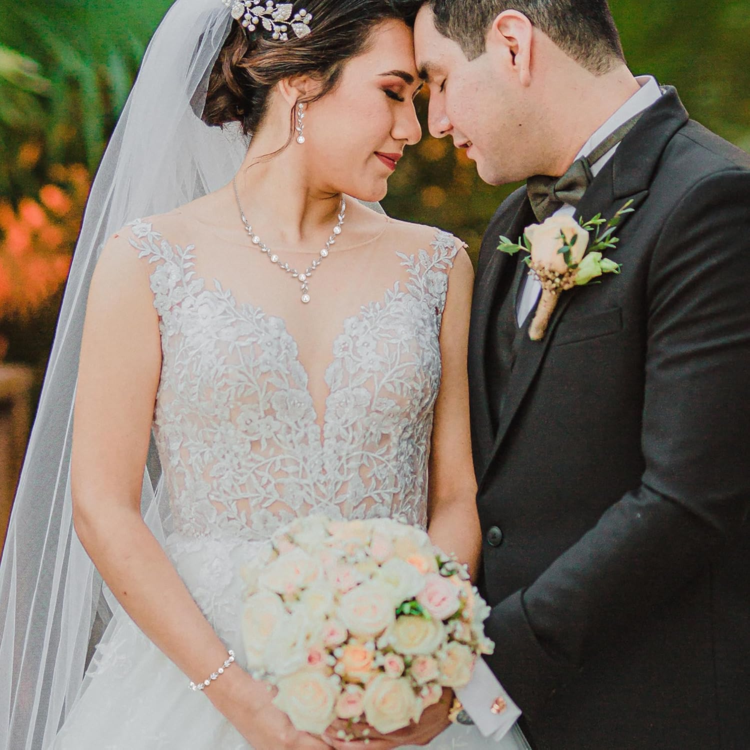 - If you are going out to a party or banquet, this women's jewellery set is the perfect accessory that will enhance your outfit. With a fabulous water drop pearl and leaf CZ design and solid construction. It features sparkly CZs which will make a timeless accessory to any jewelry collection. This wedding jewelry set can be worn with classy casual or formal attire.