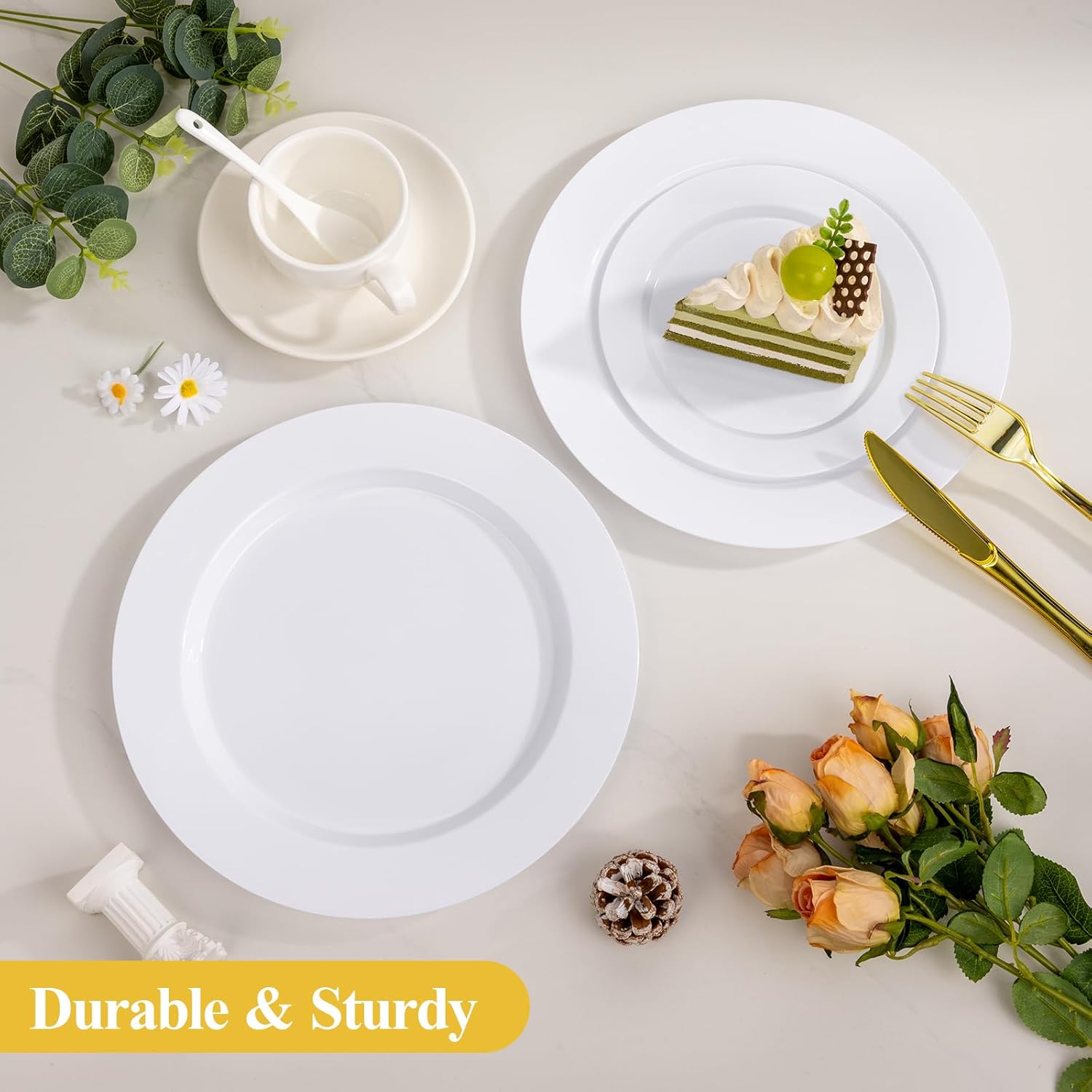 Goodluck 200PCS White Plastic Plates, Heavy Duty Disposable Plates with 100 10.25 inch Dinner Plates and 100 7.5 inch Dessert Plates for Party, Holiday, Wedding, Thanksgiving