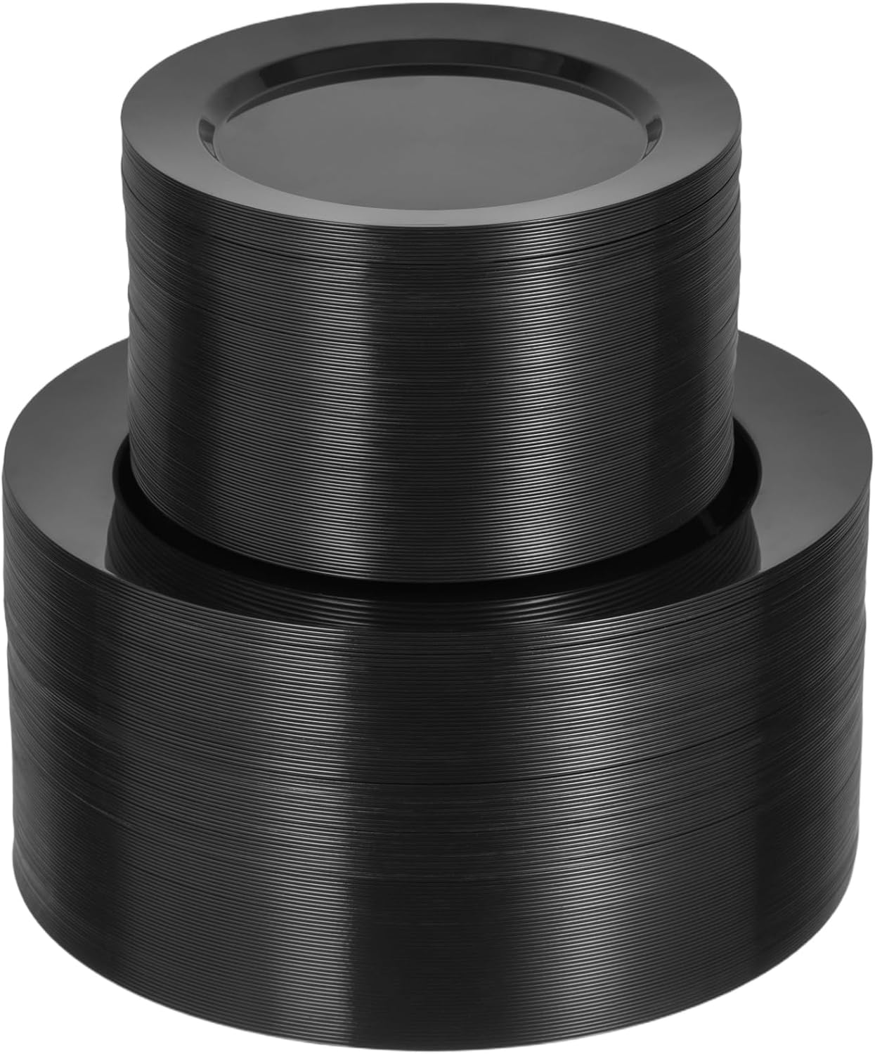 - WHAT YOU GET - A convenient 200-pack that includes 100 10.25" dinner plates and 100 7.5" salad/dessert plates. Our disposable plates ensure a hassle-free post-party experience, freeing you to savor moments with family and friends instead of worrying about cleanup.