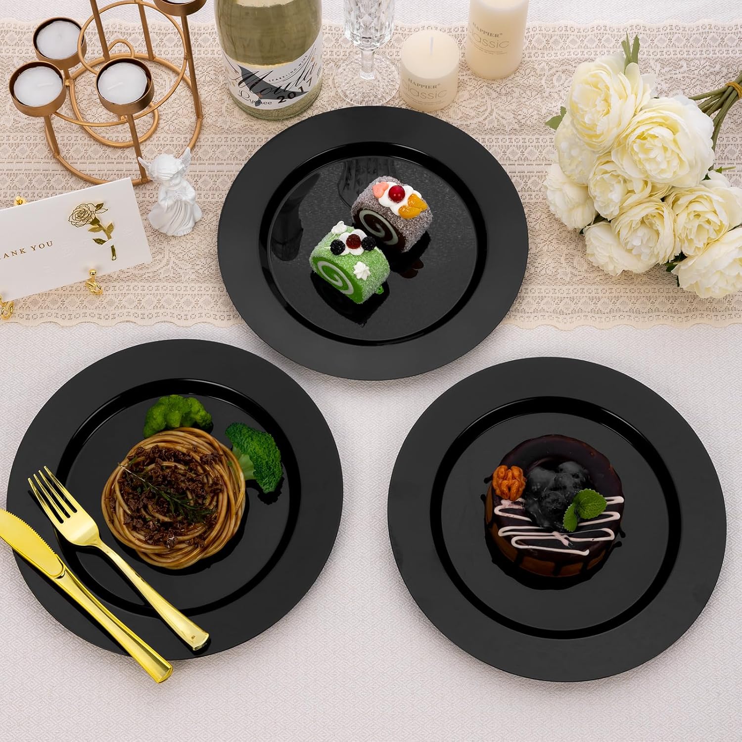 Goodluck 200PCS Black Plastic Plates, Heavy Duty Disposable Gold Plates with 100 10.25 inch Dinner Plates and 100 7.5 inch Dessert Plates for Party, Holiday, Wedding, Thanksgiving