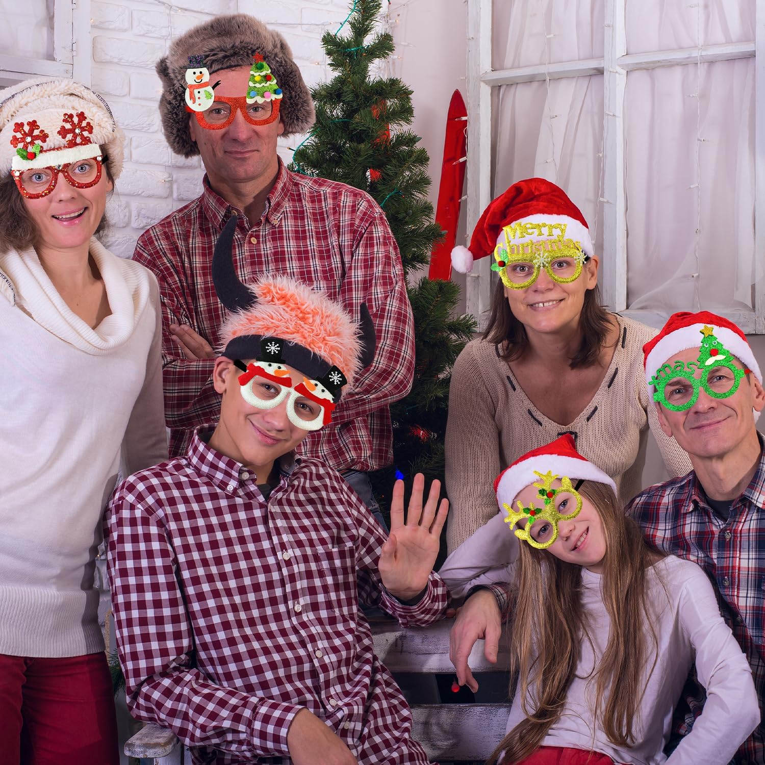 - Christmas Glasses 6Pcs – Includes 6 glitter Christmas party glasses in assorted festive styles, adding a funny touch to your holiday look with stylish Christmas elements like Santa, Christmas trees, reindeer, snowflakes, snowmen, Santa hats, and Christmas mittens.