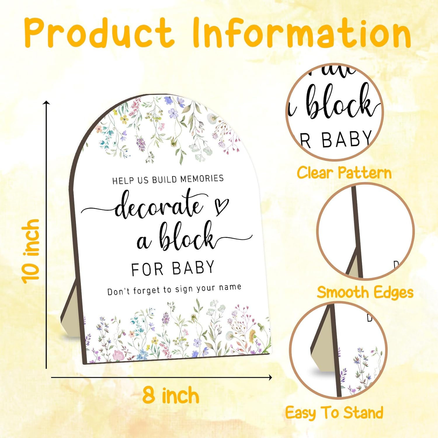 - Wildflowers Baby Shower Game Kit: This all in one floral themed activity set includes 50 blank wooden baby blocks, 24 vibrant acrylic paint markers, and a beautifully printed wooden sign. A fun and interactive way to entertain guests while creating a personalized keepsake for the baby.