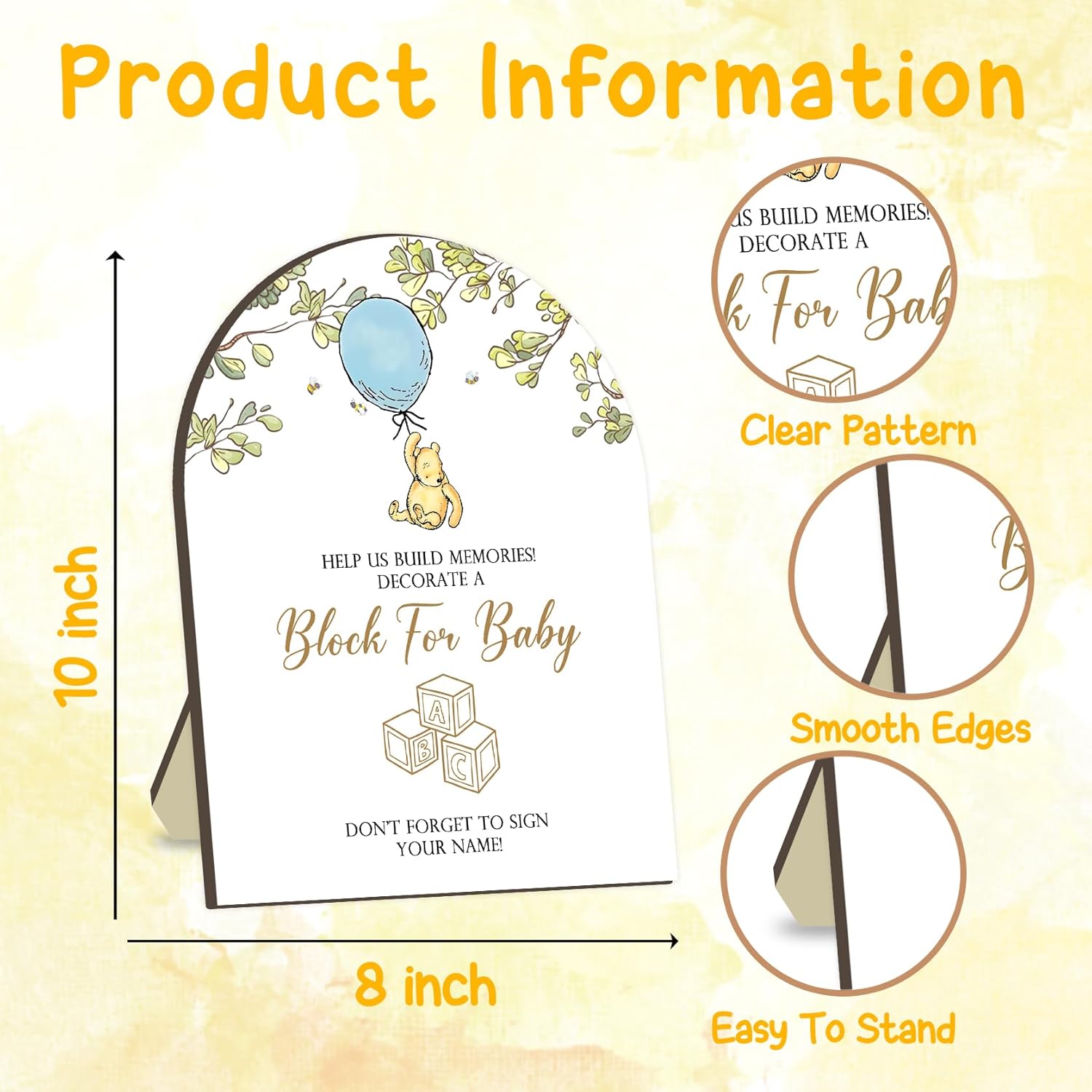 - Perfect Size: The Winnie baby shower wooden game sign measures 8 x 10 inches, with a stand on the back for easy placement on a desk. The blank wooden blocks measure 1.37 inches on all sides, it's everything you need for a fun and interactive baby shower activity that guests of all ages can enjoy.