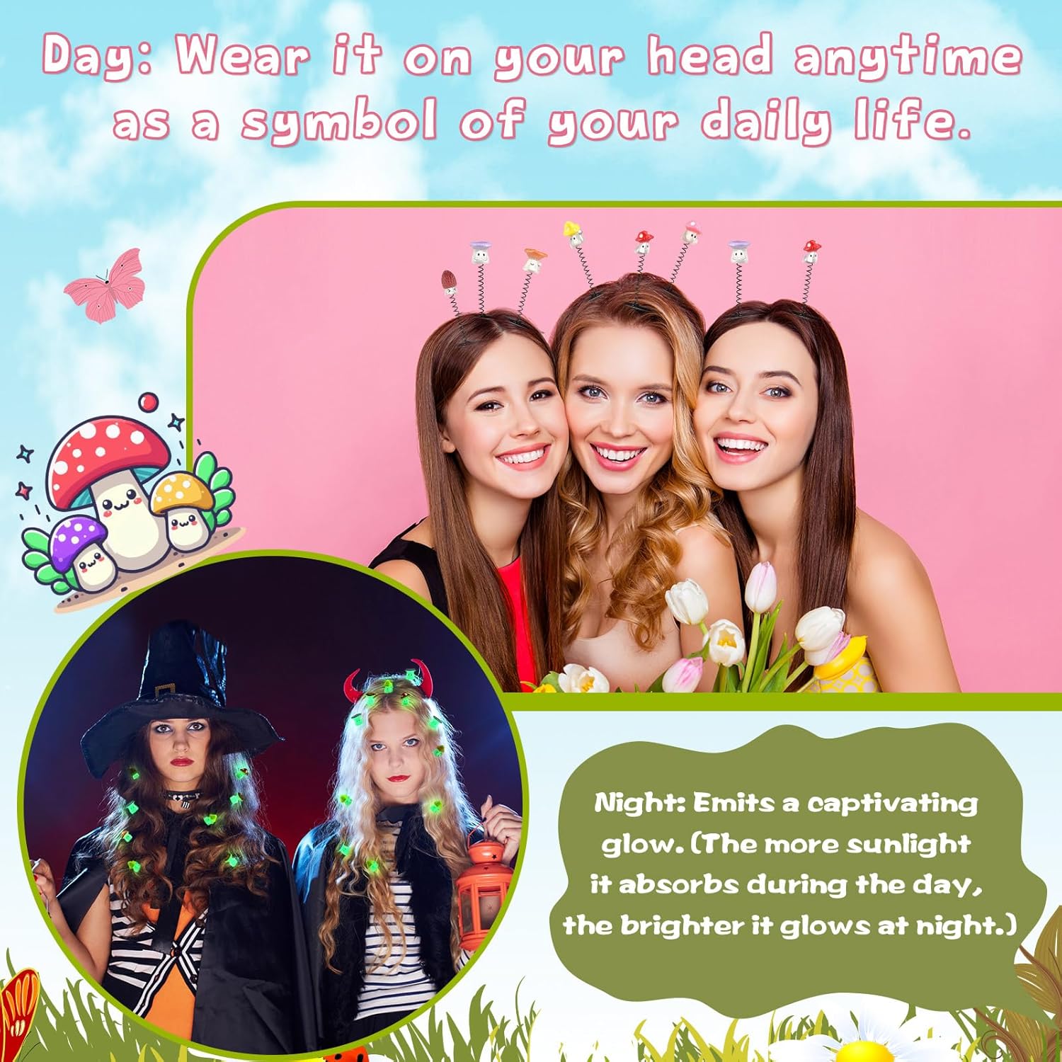 - Luminous Design: these mini mushroom hair clips are adorable and vibrant in color; Their quirky, lifelike appearance adds a touch of fun and fantasy to everyday wear; Simply place them in the sun to admire their captivating glow at night, adding a touch of magic to any setting