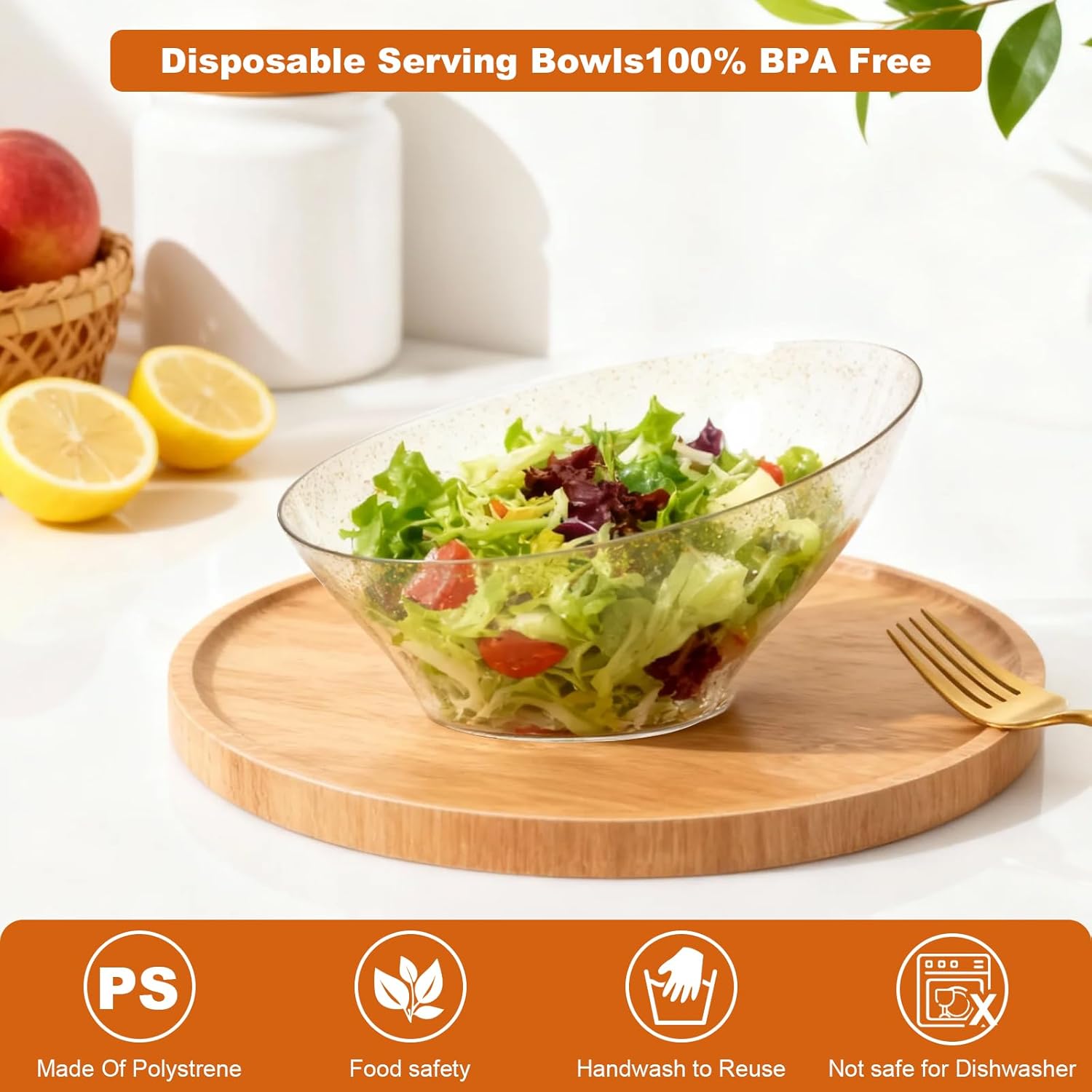 - 100% BPA-Free - Made from BPA-free reusable plastic, food-grade plastic, our disposable serving bowls prioritize guest safety without compromising on style. Host confidently with plastic serving bowls for party that are both elegant and worry-free. If you need to reuse the dishes, simply wash them with water. NOTE: These disposable dishes are not recommended for use in the microwave or dishwasher