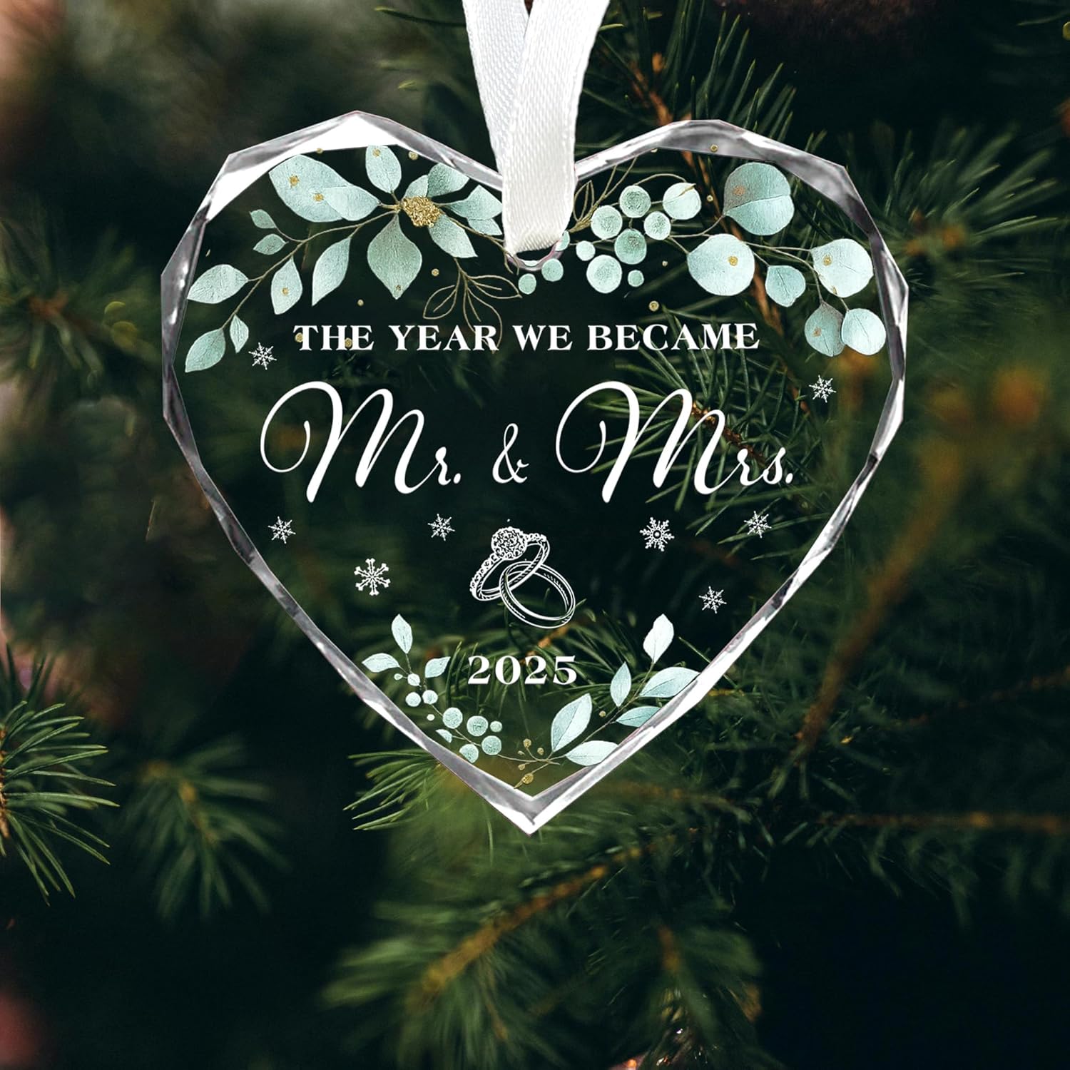 First Christmas Married Ornament 2025 - Mr and Mrs Gift - Wedding Gifts for Couples 2025 - Wedding Ideas for Newlyweds, Bride and Groom - Glass Ornament