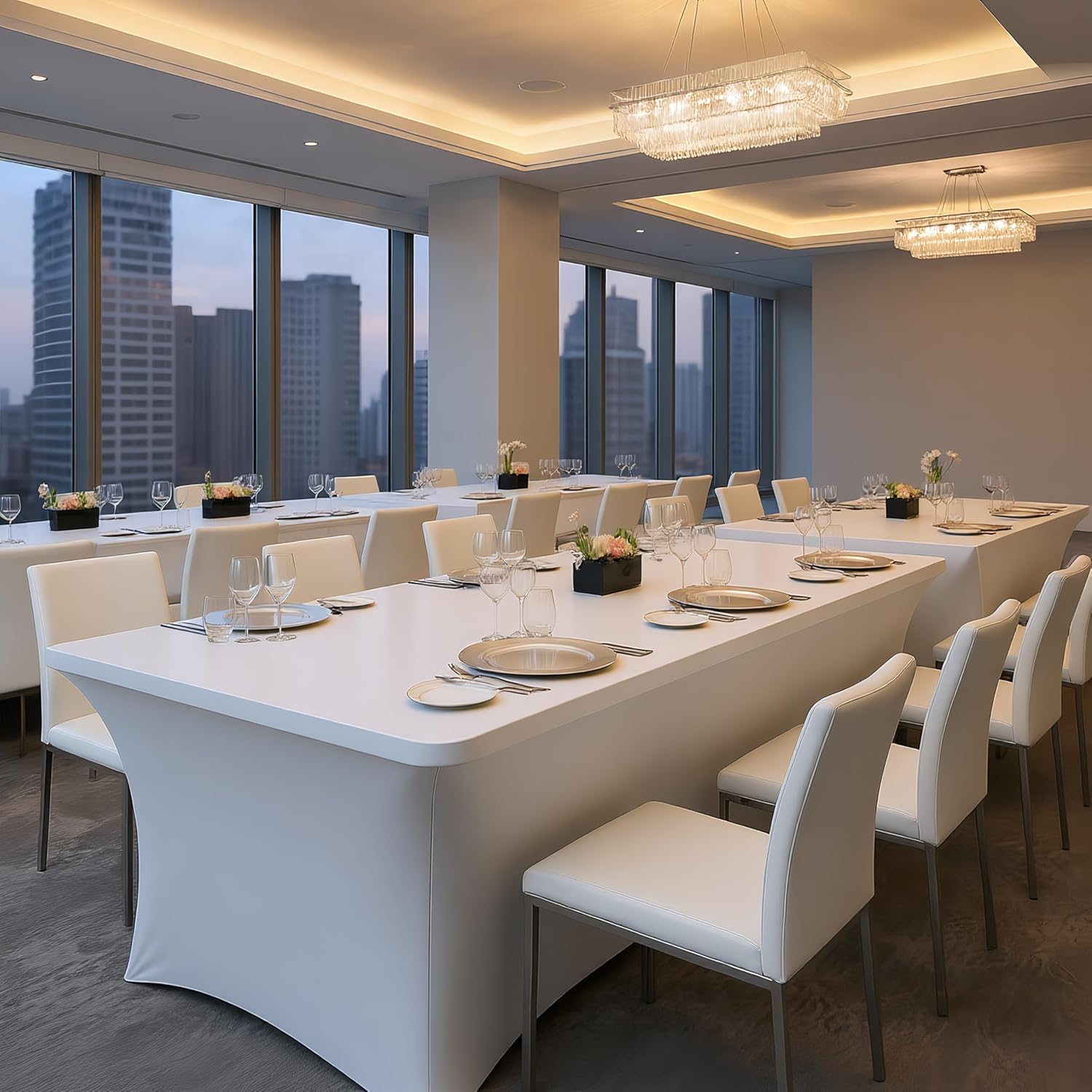 - Premium Spandex & Polyester Blend: Blend of 90% Polyester and 10% Spandex. This material provides exceptional durability and elasticity, creating a smooth, professional surface for any rectangular table without the need for ironing.