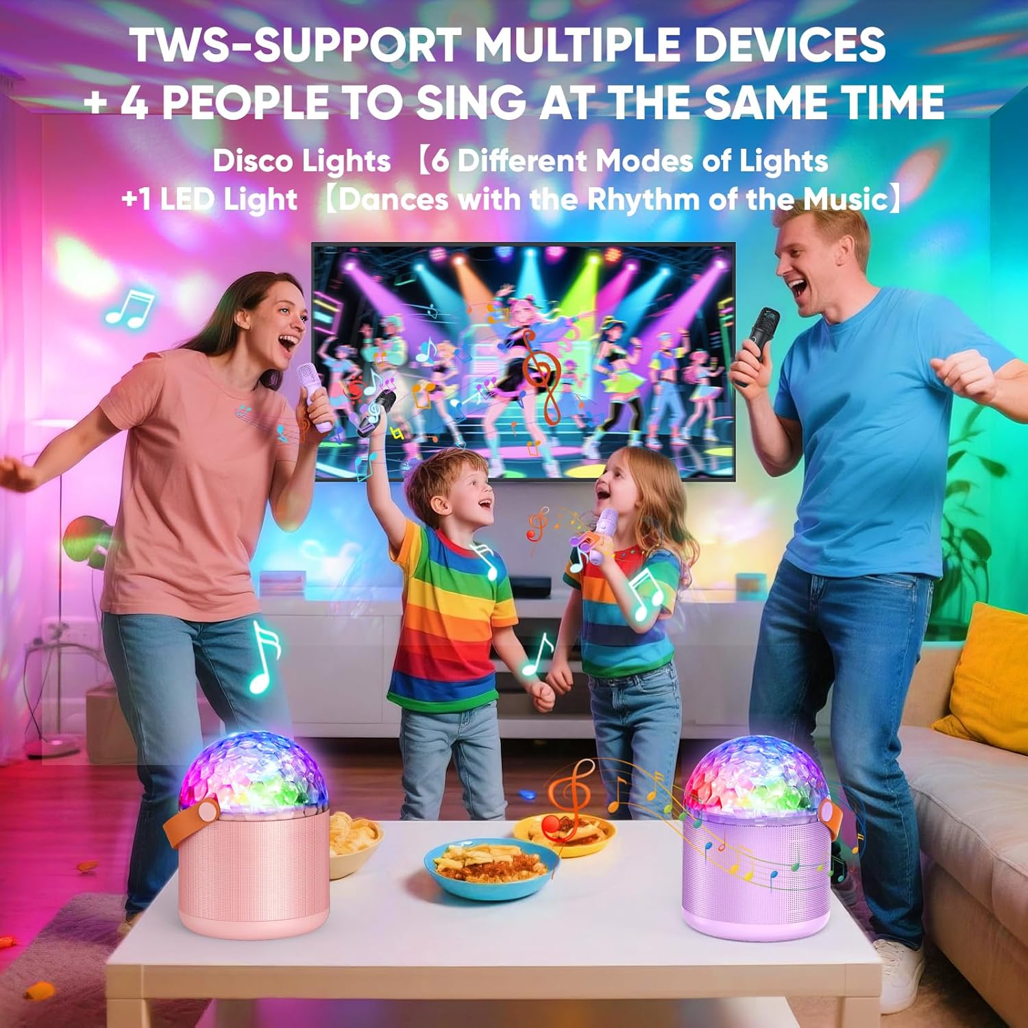 Karaoke Machine with Disco LED Lights for Adults Kids, Portable Bluetooth Speaker with 2 Wireless Microphone Xmas Toys Gifts for Girls Boys Birthday Family Home Party