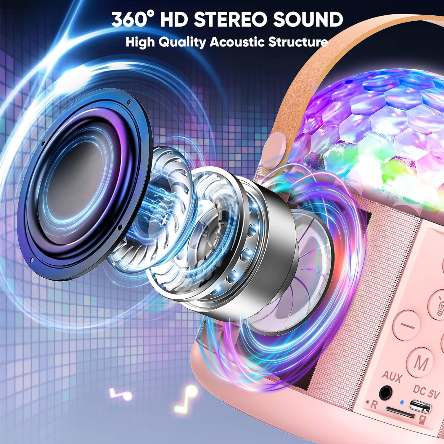 - Wireless Karaoke Machine: Experience a new level of musical fun and start your karaoke party anytime, anywhere! Our wireless karaoke machine features upgraded Bluetooth 6.0 connectivity, making connecting any music device easy and enjoying unlimited popular karaoke playlists. It's lightweight and portable, specially designed for kids aged 3 and up. Let every little musician find confidence and joy in their singing, enjoying the freedom to sing to their heart’s content