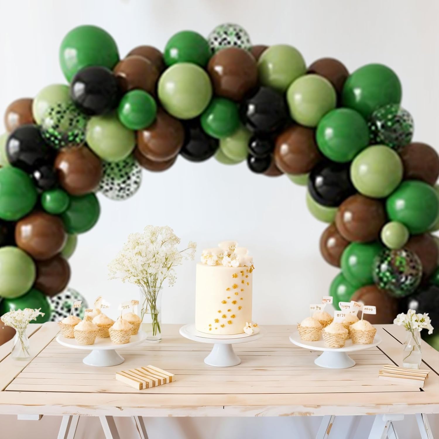 Green and Brown Balloons, 50PCS 12 Inch Camouflage Green Black Brown Ballons, Dark Emerald Green Confetti Balloon for Camping Game Jungle Theme Camo Birthday Army Party Decorations