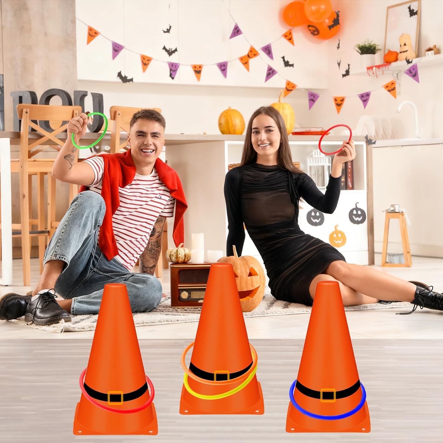 - Fall Festival Value Pack: Including 6 orange black plastic cones 18 toss rings, each 9 inches tall, perfect for both ring toss games and sports training. The bulk set meets needs for large–scale activities, whether it's a party with many guests or a team training session.