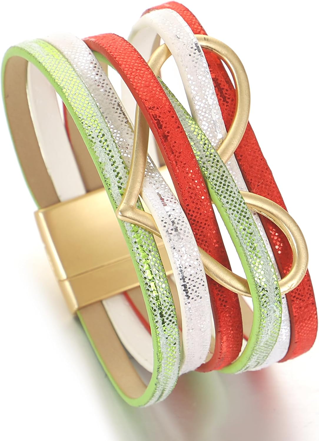 - The Christmas bracelet measures approximately 7.4" long with width 1.5", it's easy to put on and take off because of the clasp. Please confirm whether the size of the product is suitable for you before you order it.
