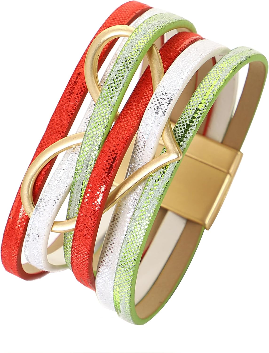 Leather Wrap Bracelet for Women Beaded Cuff Bracelet with Heart-shape Decor Bohemian Crystal Bracelet Jewelry with Clasp Bangle Bracelet for Women Girls Birthday Holiday Gift