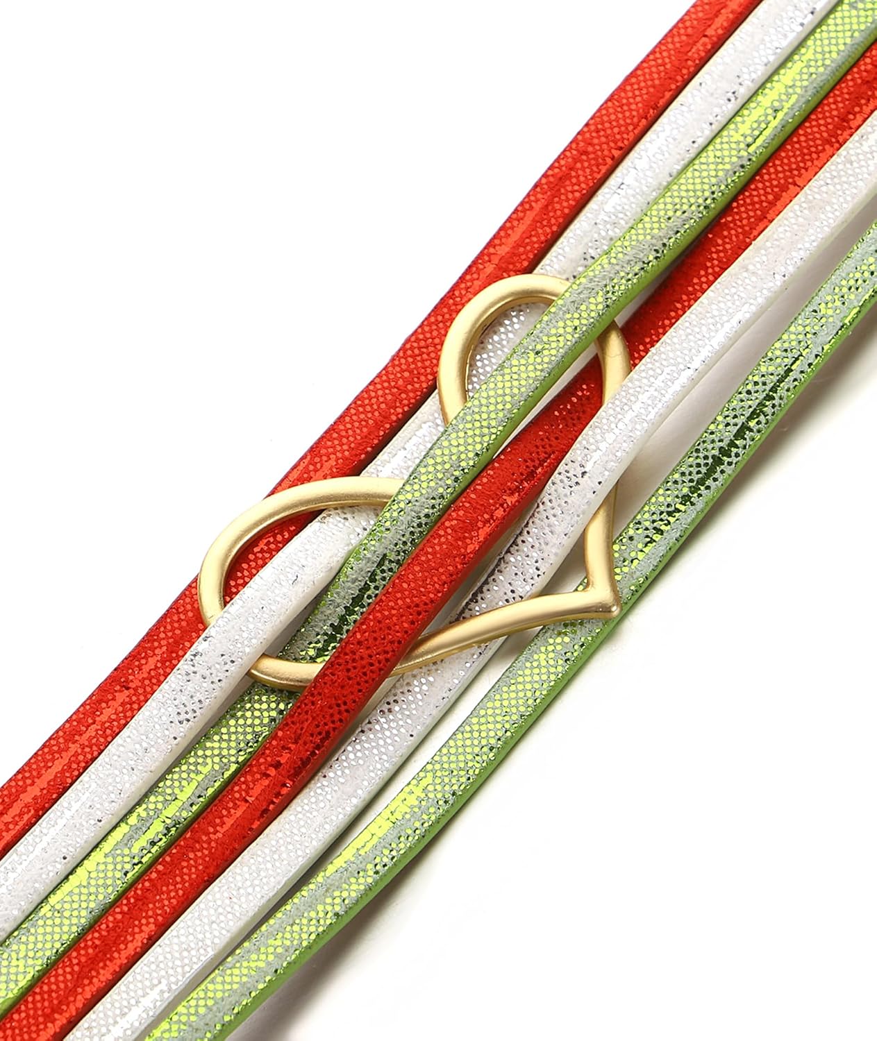 - This boho leather bracelet features multiple strands of leather combination in different styles, decorated with heart-shaped alloy.