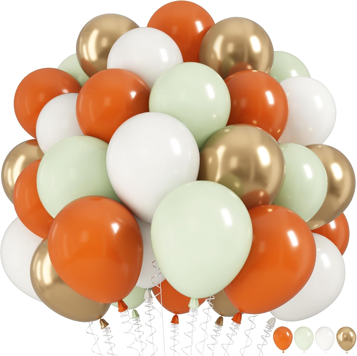 - 【Fall Balloons Set: 】This is a beautiful bright balloon, which contains balloons of different colors. Include 12 inch burnt orange balloon(10pcs), dusty green balloon(10pcs), white balloon(8pcs), metallic gold balloon(7pcs), 1 rolls of ribbons. You can use these different shades of multi color balloon kits, DIY balloon combinations to create your birthday party.