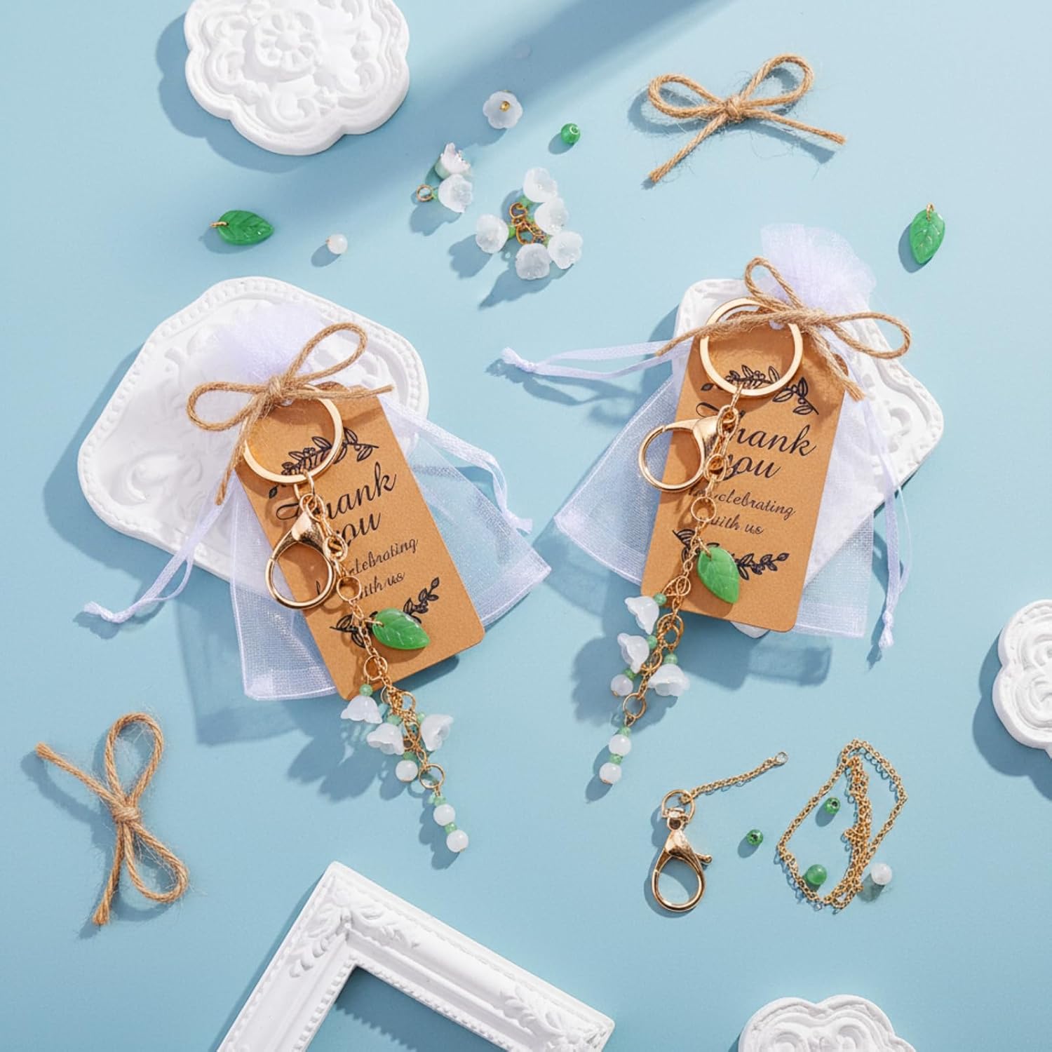 20 Set Christmas Flower Keychain Party Favor Lily of The Valley Keychain Thank You Keyring Gifts with Kraft Tags Organza Bag for Guests Souvenir Baby Shower Wedding Bridal