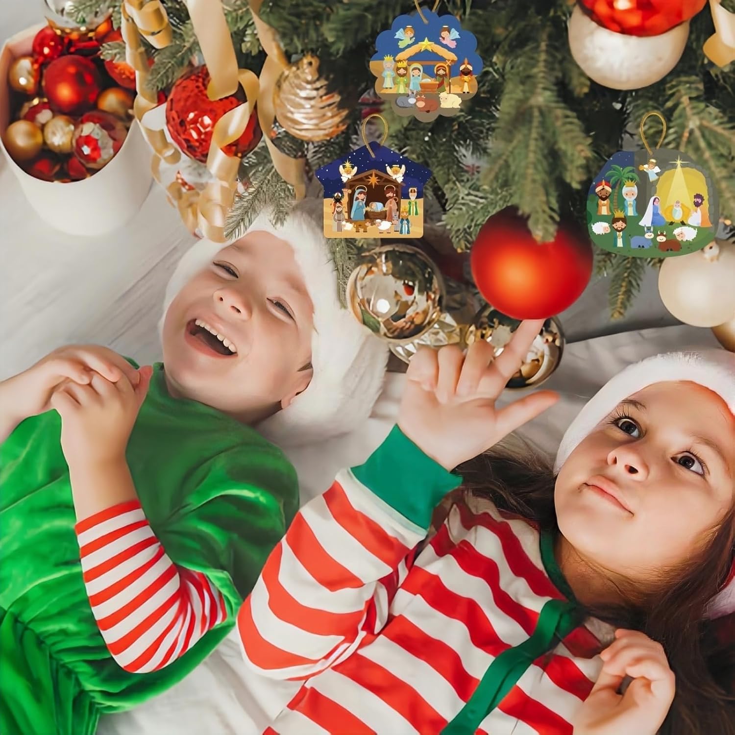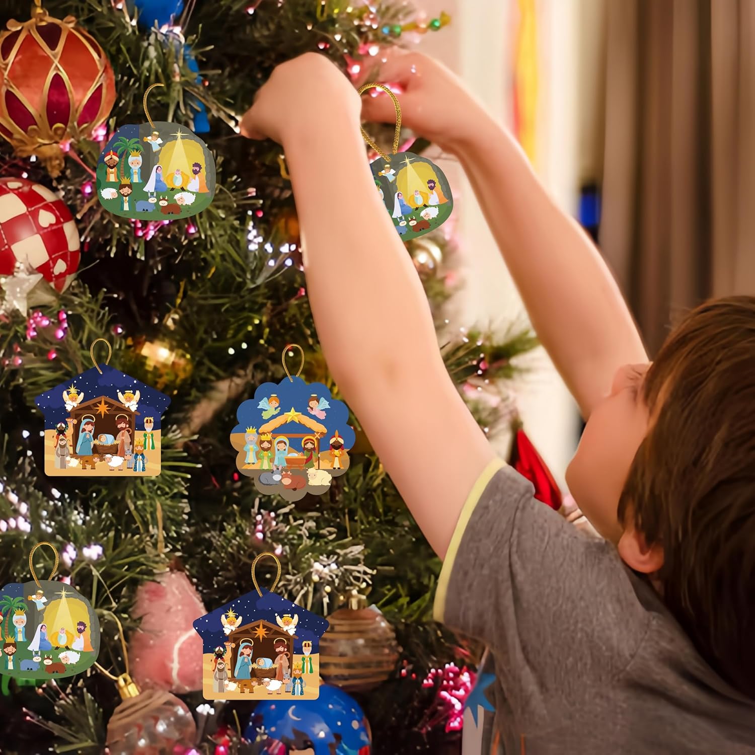- ✨Nativity Craft Ornaments Set for Kids: This Christmas crafts DIY set includes 30 Nativity scene cardboard pieces, ,30 beautifully designed Nativity stickers, a finished sample picture, and a golden hanging rope. Our set features three unique designs, each style size is about 14 x 14 cm/ 5.51 x 5.51inch,allowing you to create three different Nativity-themed scenes. With this Christian sticker craft kit, you can easily make one-of-a-kind Christmas decorations and enjoy festive hands-on creativity!