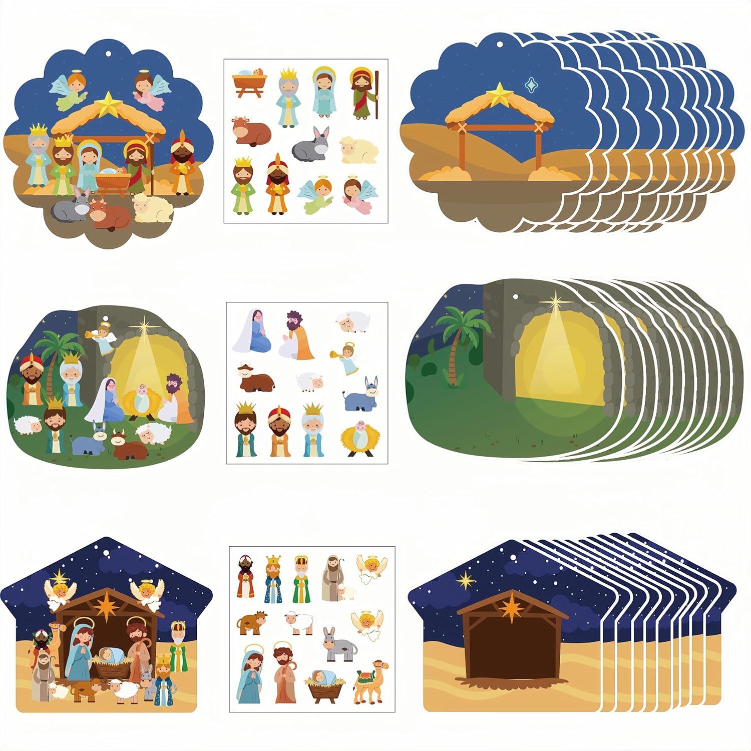 30 Sets Nativity Sticker Set for Kids Make a Nativity Sticker Scene, Religious Christmas Crafts Gifts, Christmas Hanging Decorations for Kids Sunday School Classroom, Christian Party Games Activities