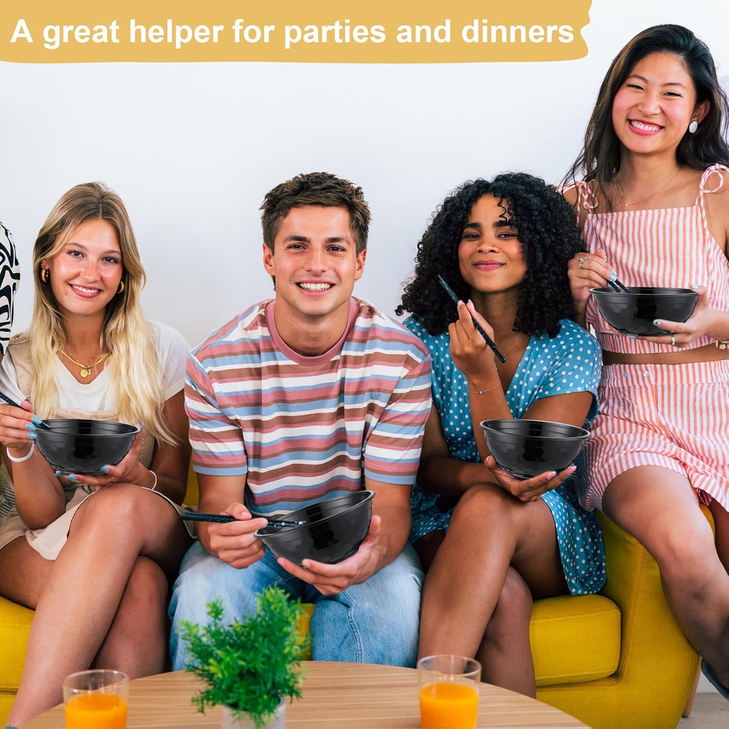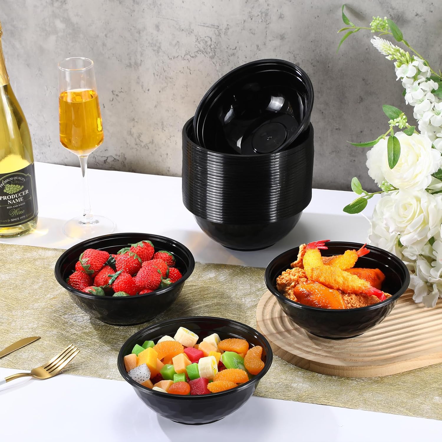 150 Pack 32oz Black Disposable Plastic Bowls Plastic Salad Bowls Large Stackable Serving Soup Dinnerware for Birthdays, Weddings, Parties, Festivals
