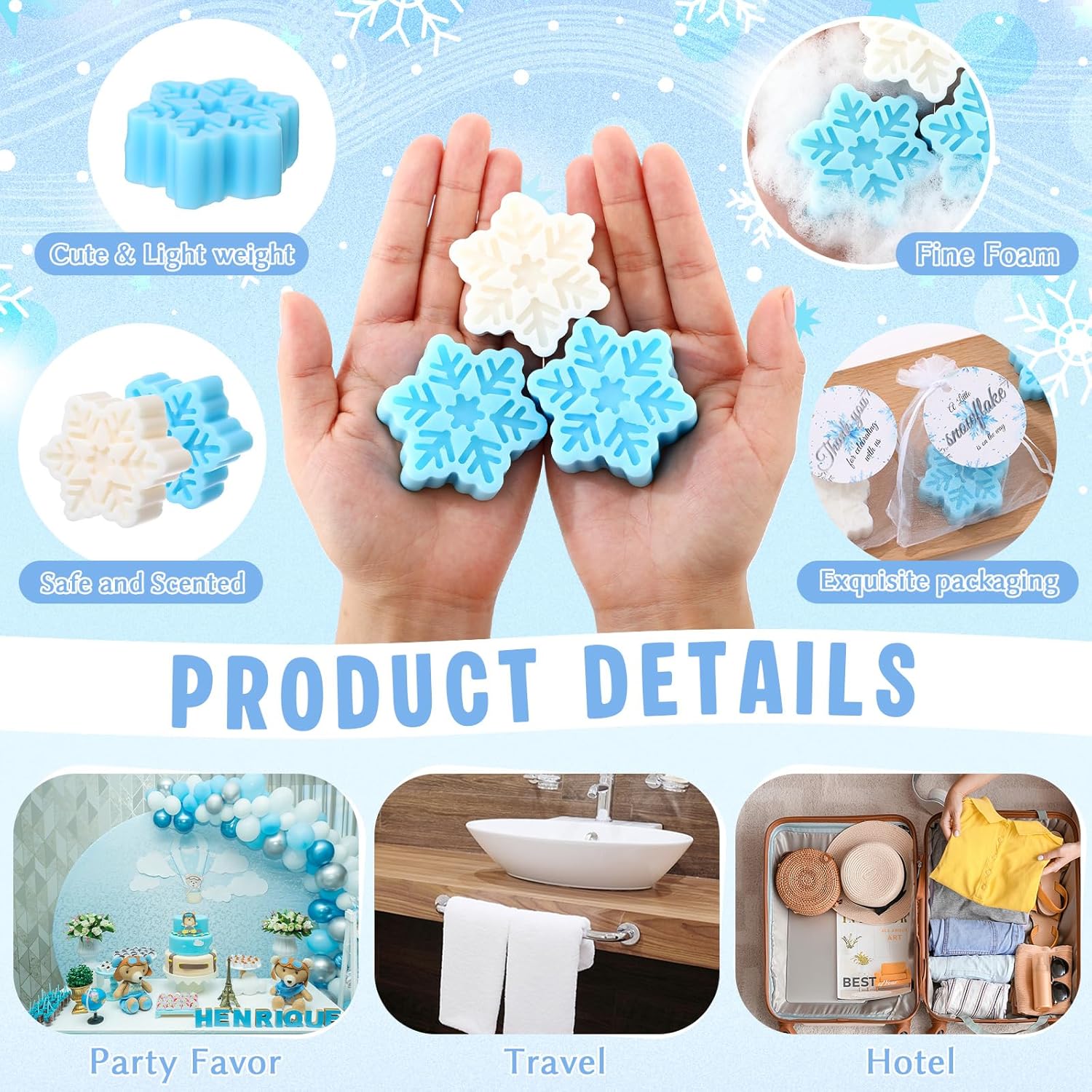 - Baby Shower Soap Favors Sets: the set includes 30 snowflake soap favors in 2 colors (15 in white, and 15 in blue), 30 thank you cards, and 30 organza bags, whether for bulk gifting or individual packaging, it can be applied directly, easily meeting gifting needs for various occasions