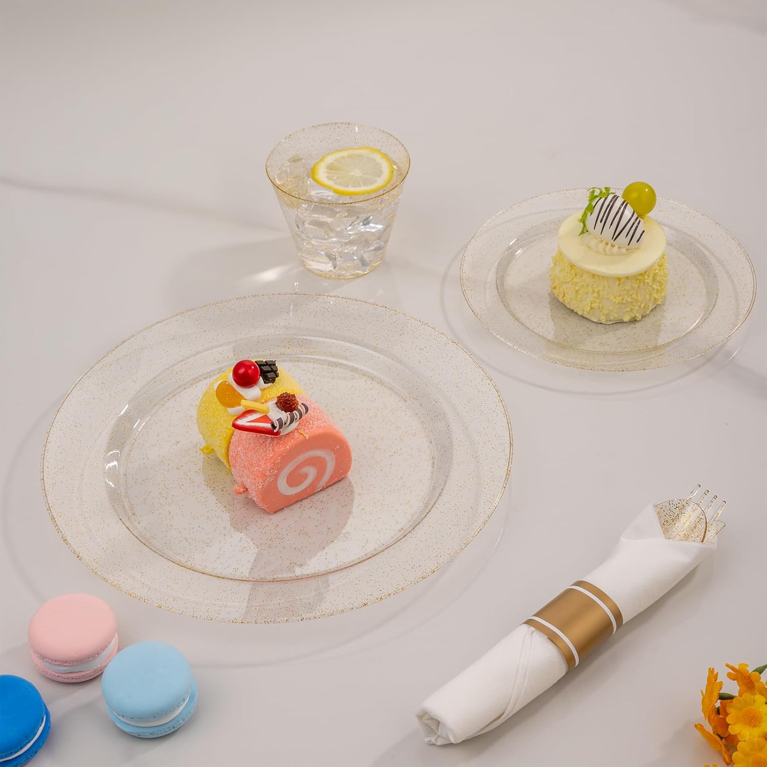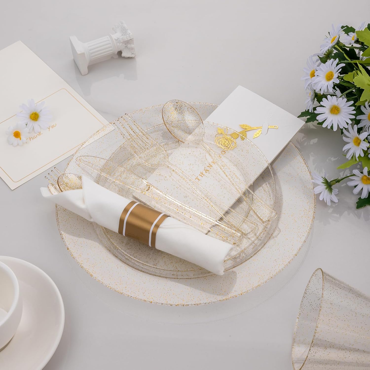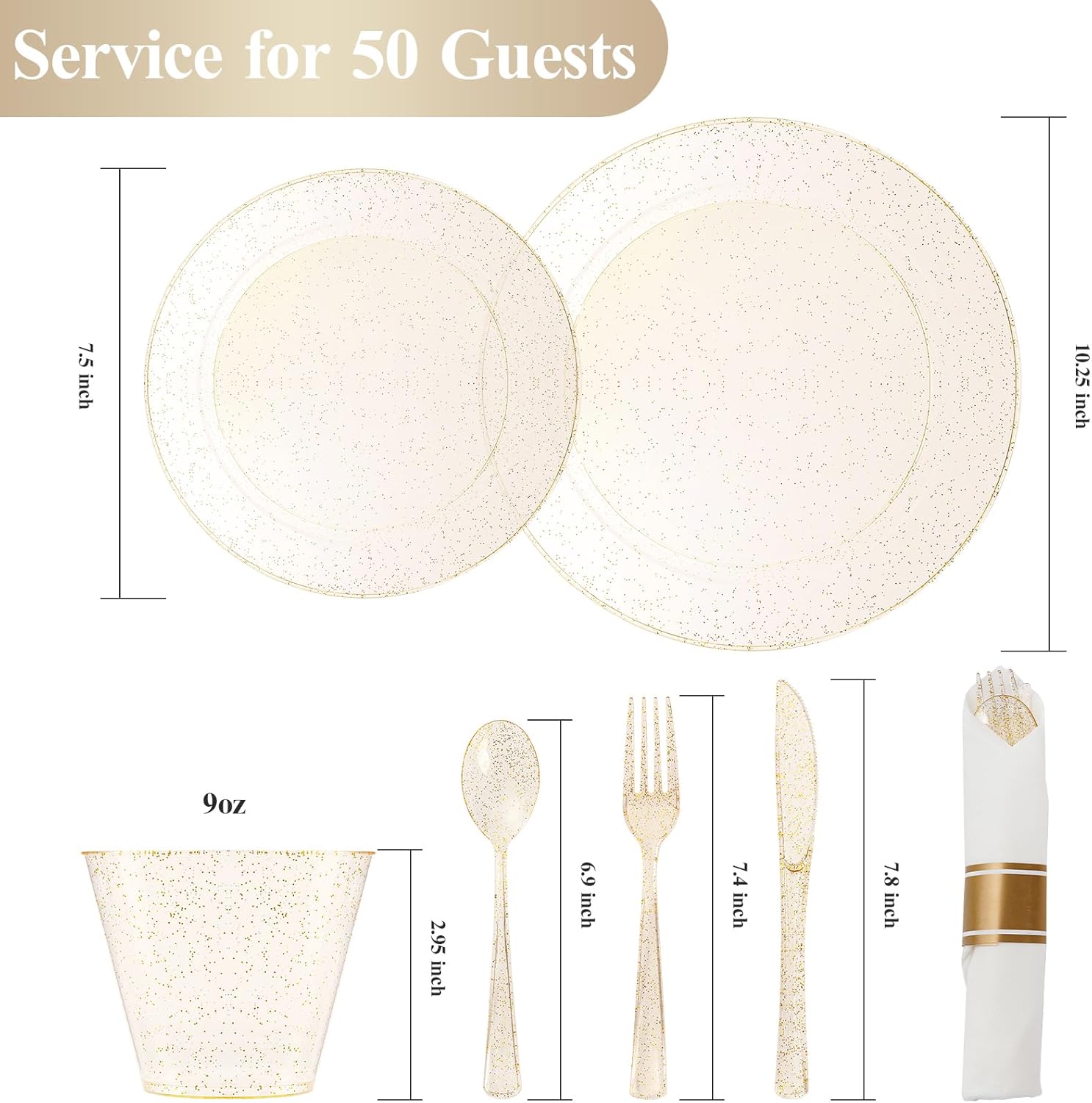 - All Occasions: The dinner plates and dessert plates are perfect for a range of events including weddings, birthdays, anniversaries and casual gatherings; the plastic gold silverware set is an ideal for various occasions