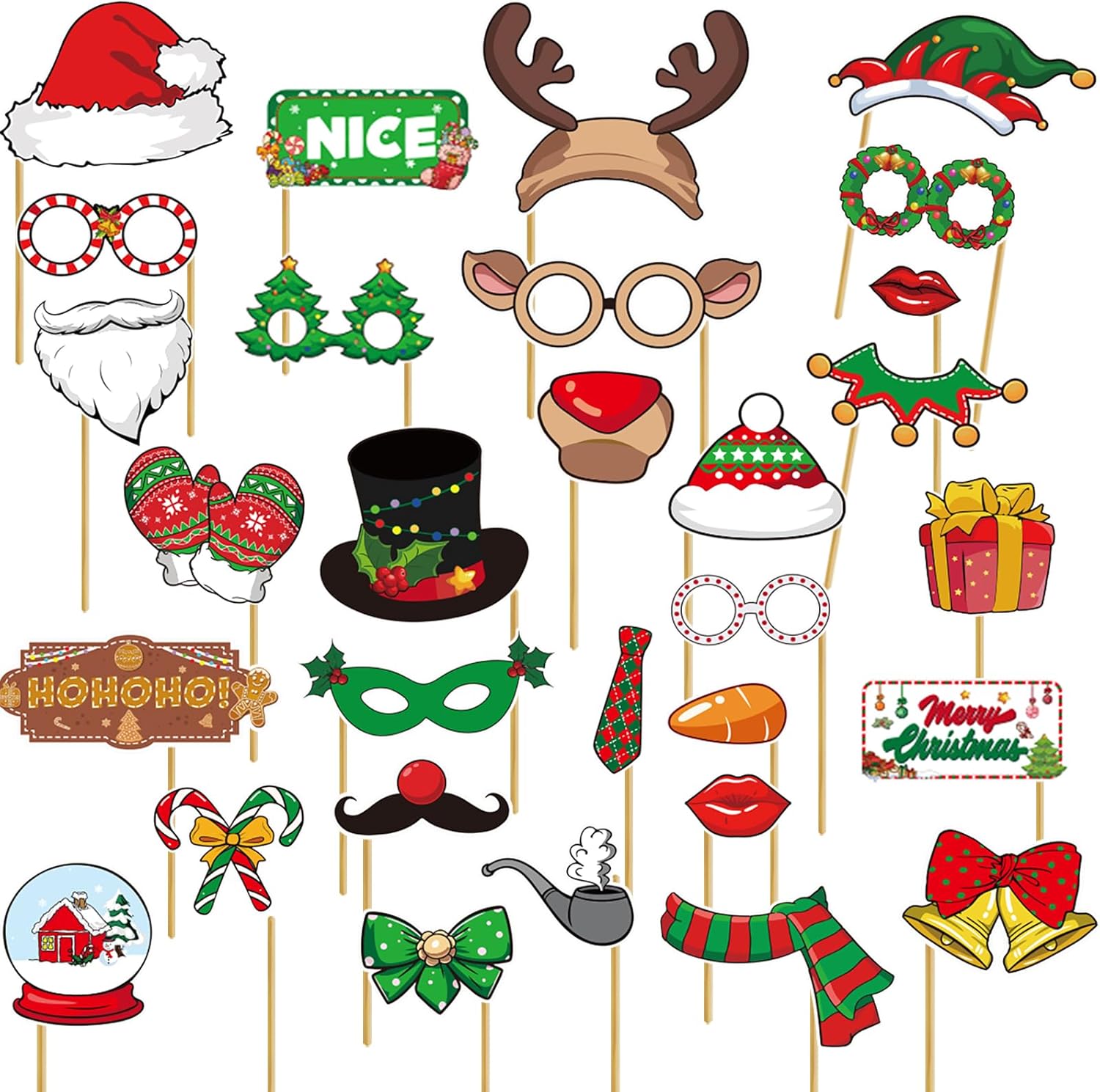 - VALUE PACK: Including 30Pcs Christmas photobooth props, 30Pcs wooden sticks and glue dots, this DIY Christmas booth props kit can provide everything you need to create an amazing Christmas photo booth. Various styles of christmas selfie props inspire fun poses, injecting joyful interaction and lasting memories into your Christmas party