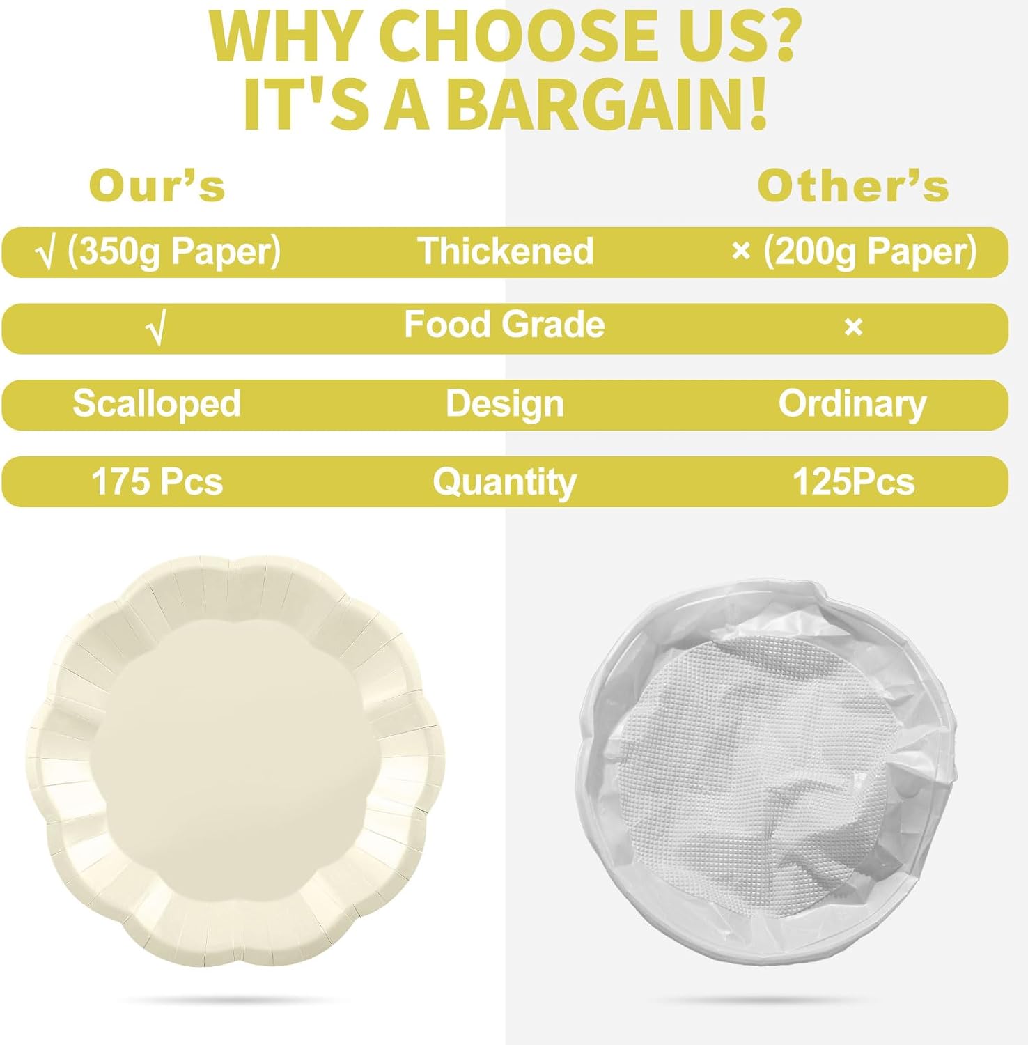 - 【Wide Application】Cream Scalloped paper plate set is versatile and is not only suitable for various celebrations such as Thanksgiving decoration, birthday parties, baby showers, bridal showers, weddings, etc.; it is also very suitable for family gatherings and outdoor picnics, helping you to easily cope with any occasion.