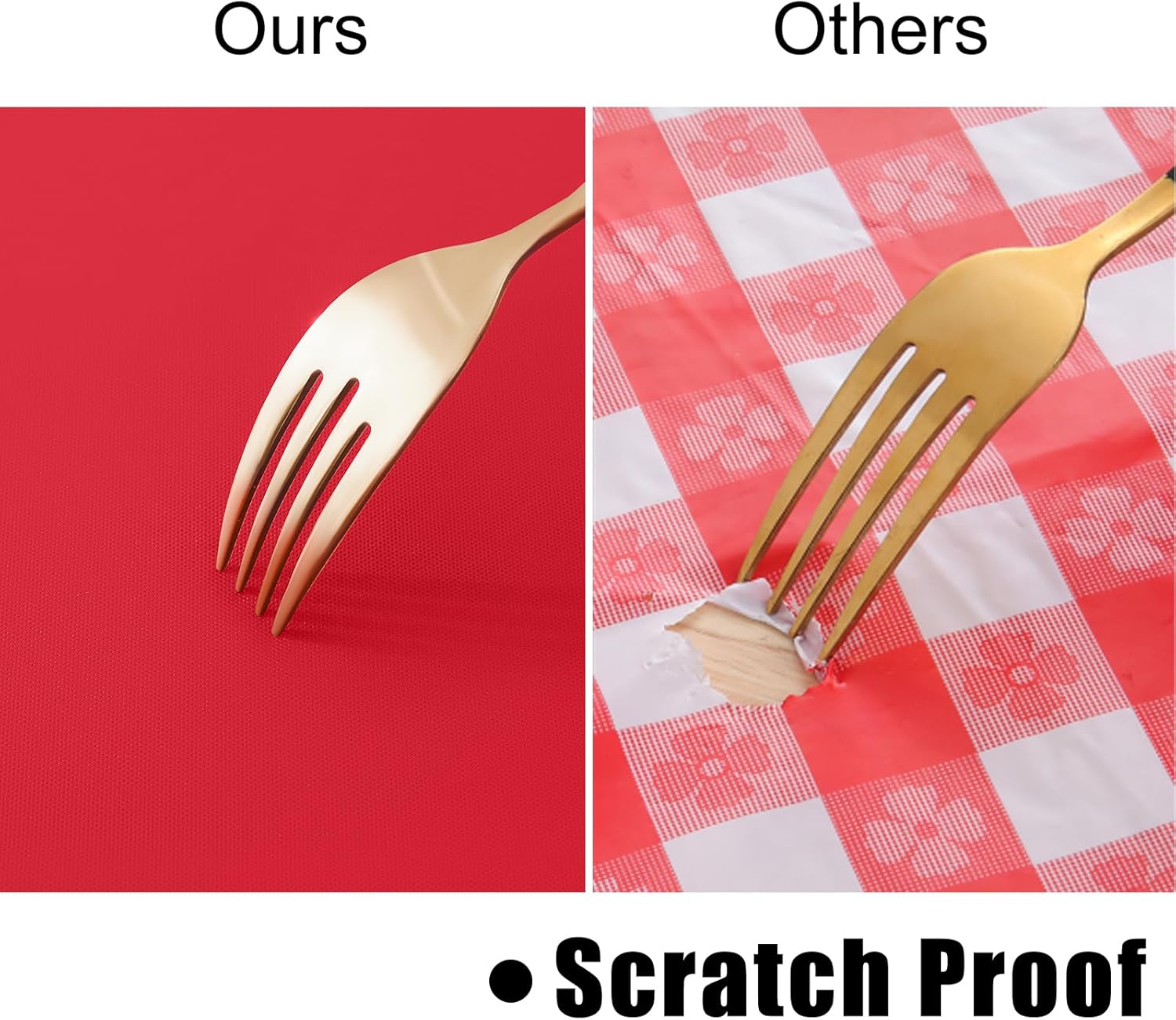 - [Sturdy & Functional] The surface of our tablecloth features premium vinyl material, which makes it more sturdy and protects your table from everyday wear and tear, and tableware scratches