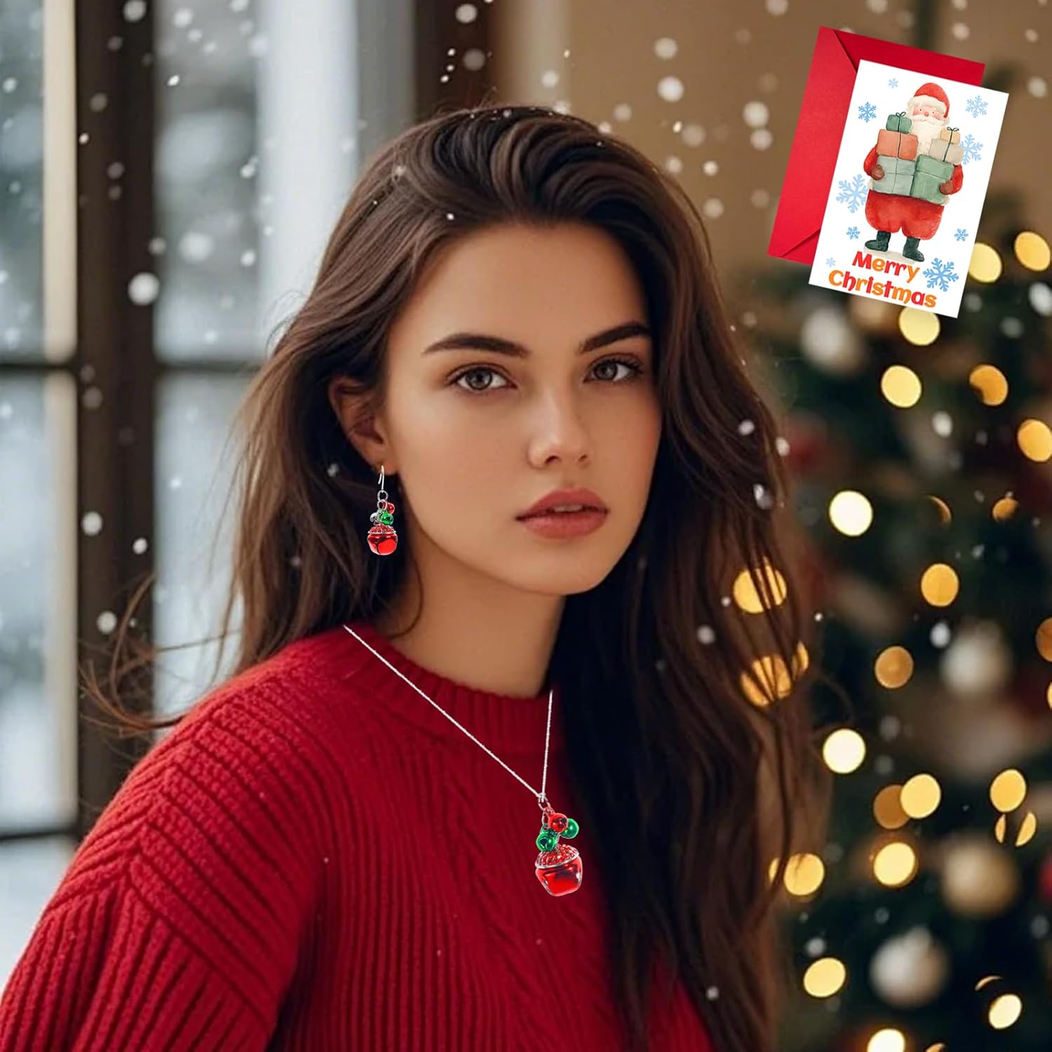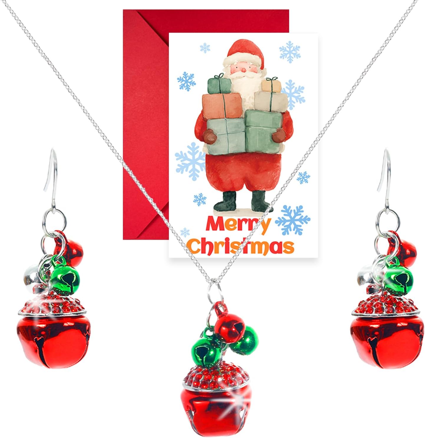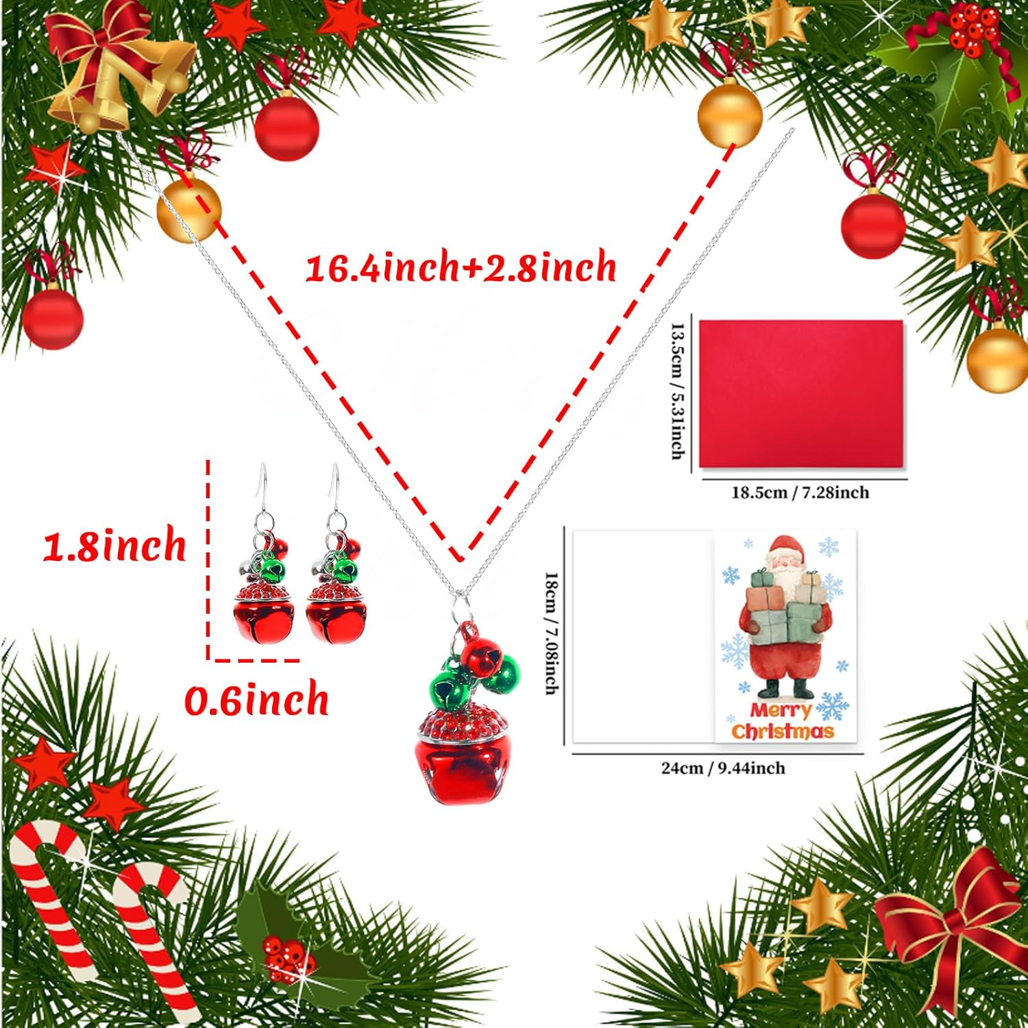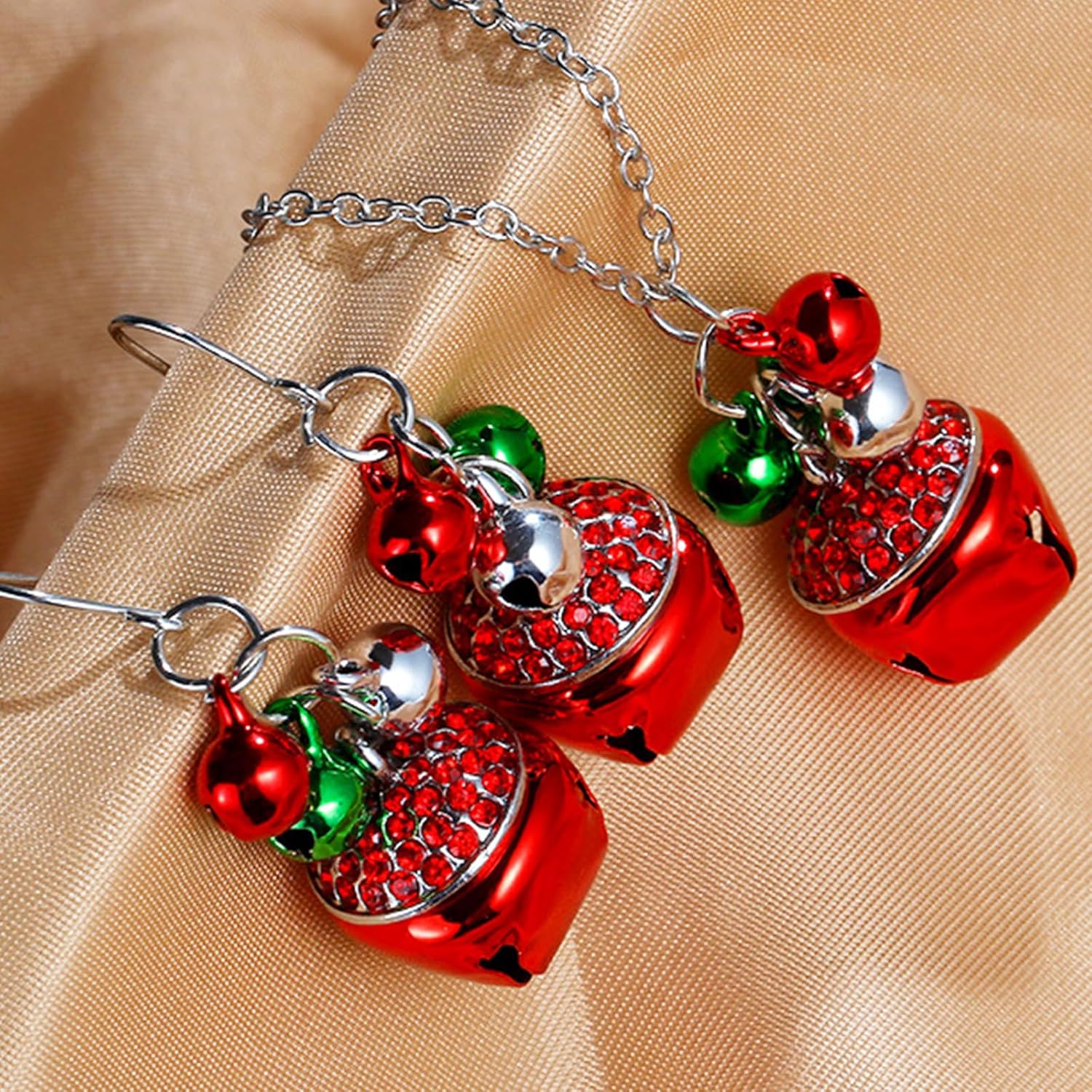 - ๐Christmas Bell Jewelry Set: The Christmas jewelry set includes necklaces and drop earrings with large red bells and some small red and green bells on top Very suitable for creating a joyful and perfect holiday appearance.