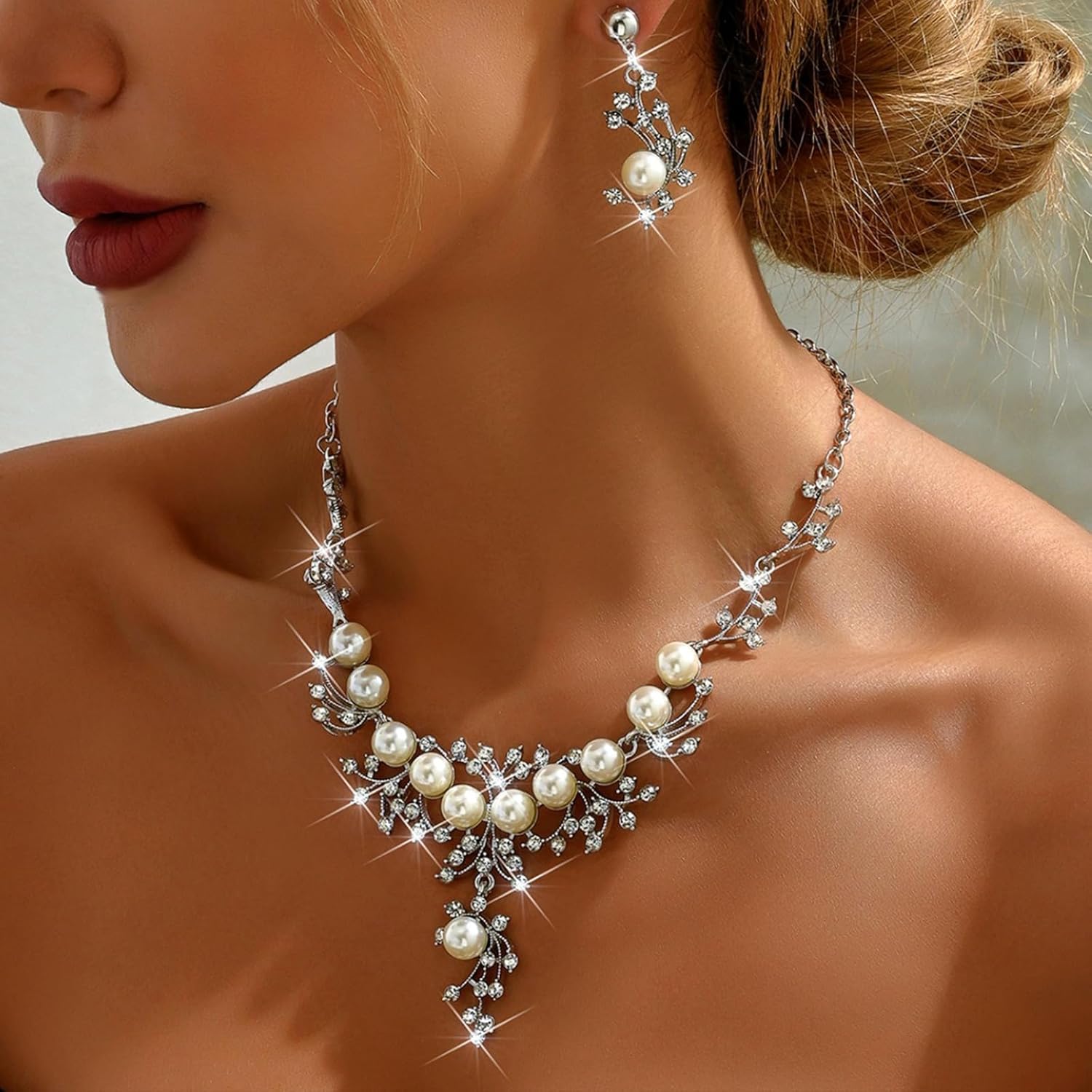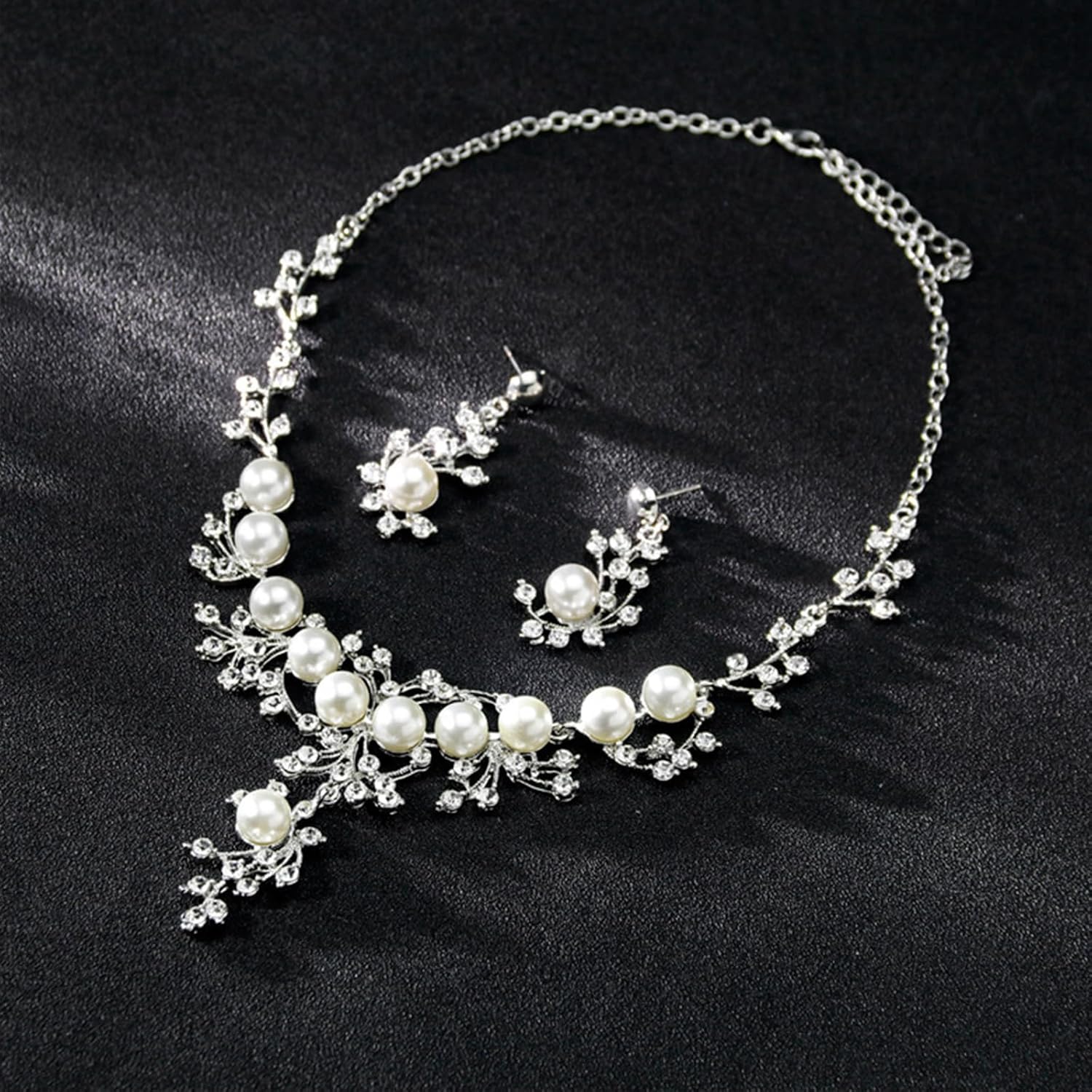 - ๐ Complete & Coordinated Set: Features a classic pearl necklace and matching dangle earrings, designed to complement each other perfectly for a put-together look.
