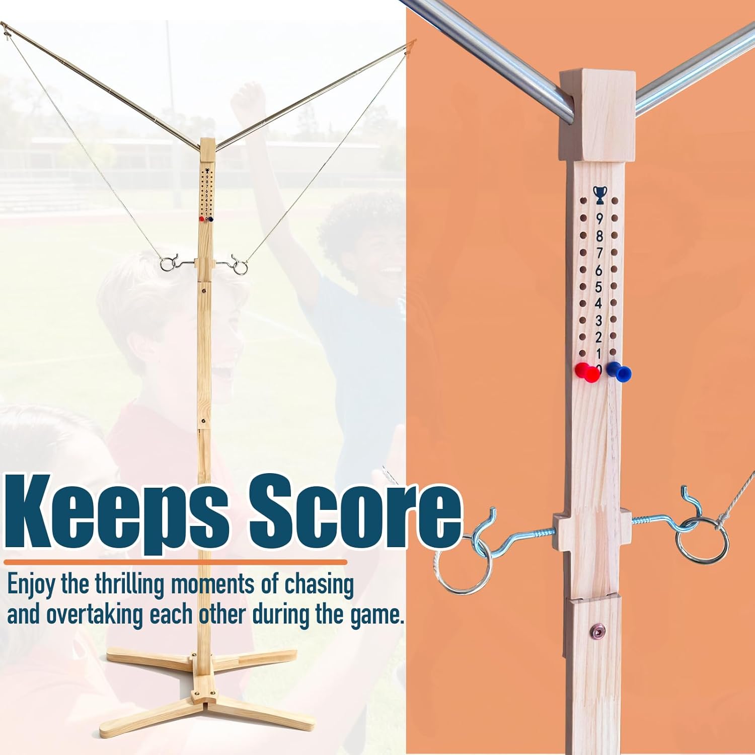 - Scoreboard — To make the game more competitive and entertaining, we have set up scoring zones on the pole. The player who successfully lands ten rings first wins the game. The intense and exciting atmosphere will make your gatherings even more wonderful.