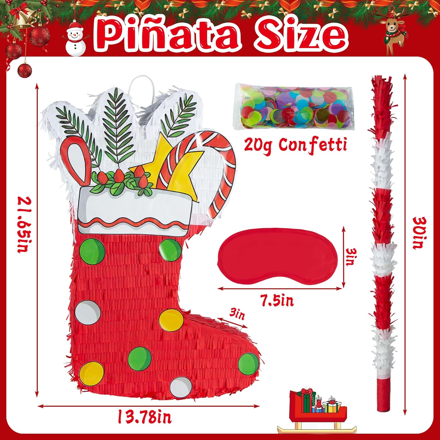 PCFING 21.6 Inch Christmas Stocking Piñata with 30 Inch Piñata Stick Blindfold Confetti for Boy Girl Adults Xmas Party Game Decorations