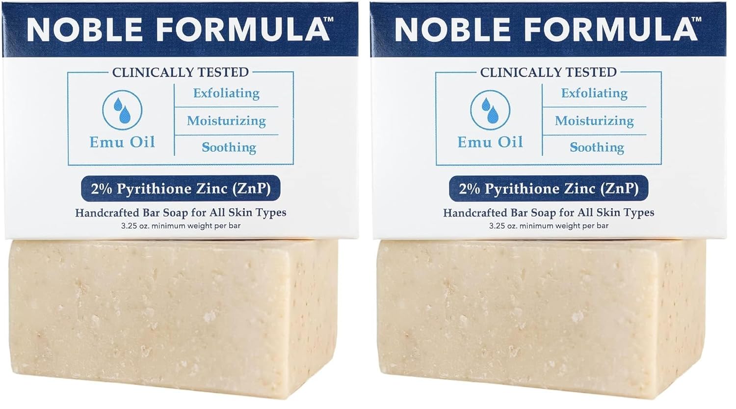 Noble Formula 2% Pyrithione Zinc (ZnP) Emu Oil Bar Soap, Especially Formulated for Acne, Psoriasis, and Eczema, Safe for Daily Use and All Skin Types, 3.25 oz (Pack of 2)