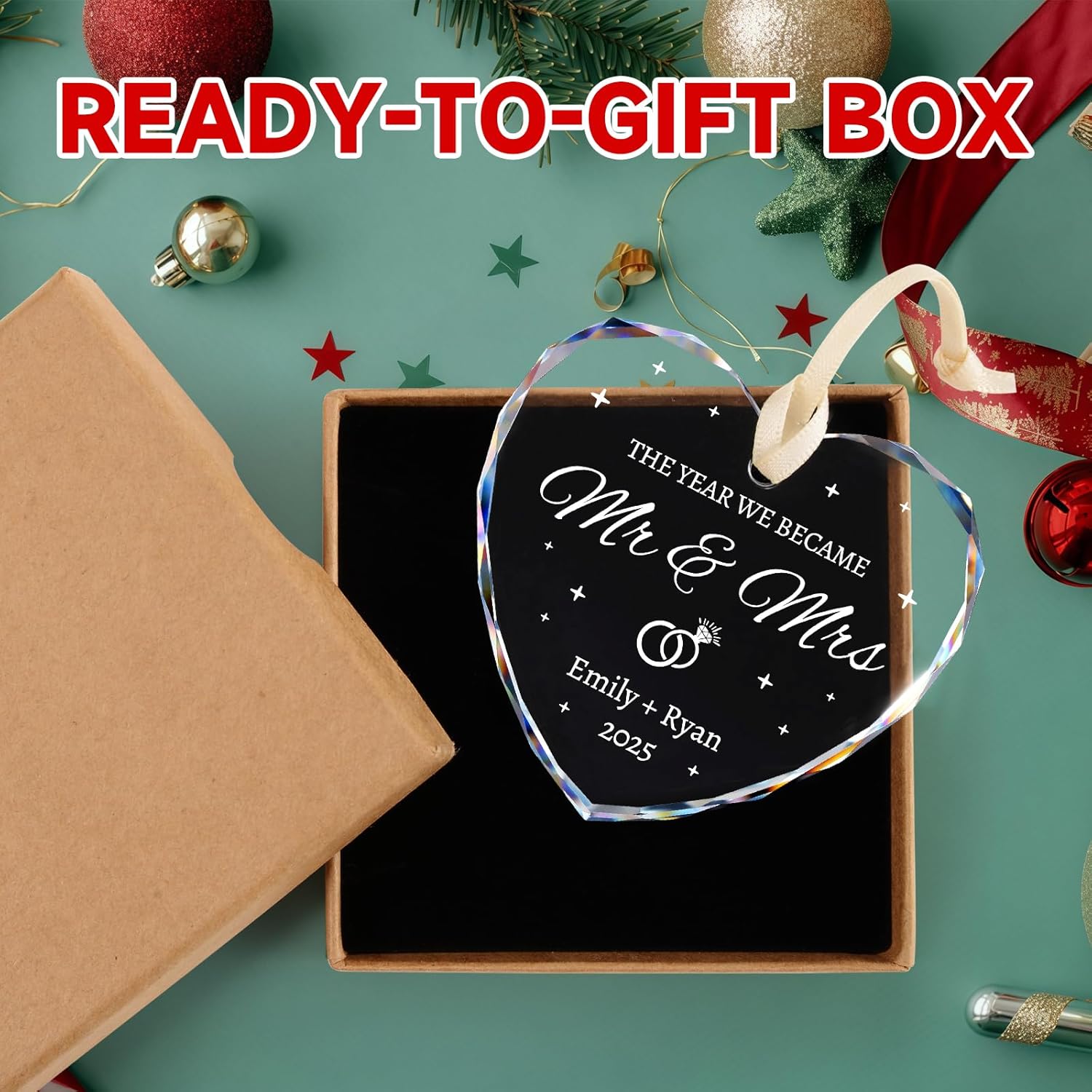 - CUSTOM WEDDING GIFTS FOR COUPLES: Click "Customize Now" to start personalize your own ornament special with name, date etc. Wish the happy couple a lifetime of joy with this darling acrylic ornament. Featuring "The Year We Became Mr & Mrs" in a beautifully subtle way, it's like a little sparkle of happiness to remind them of their special "I do" each and every year. Suitable for wedding ornament, wedding keepsake ornament, Mr and Mrs ornament, couple ornaments, first married ornament, just married ornaments