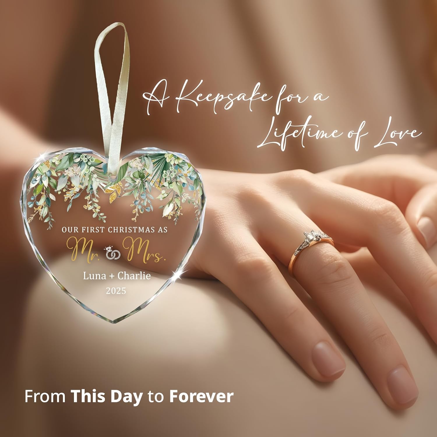 - π The Year We Became Mr. & Mrs. Custom Ornament 2025 β Celebrate your first holiday season as husband and wife with a timeless keepsake. This heart-shaped design is the perfect first Christmas ornament 2024 for any newly married couple.