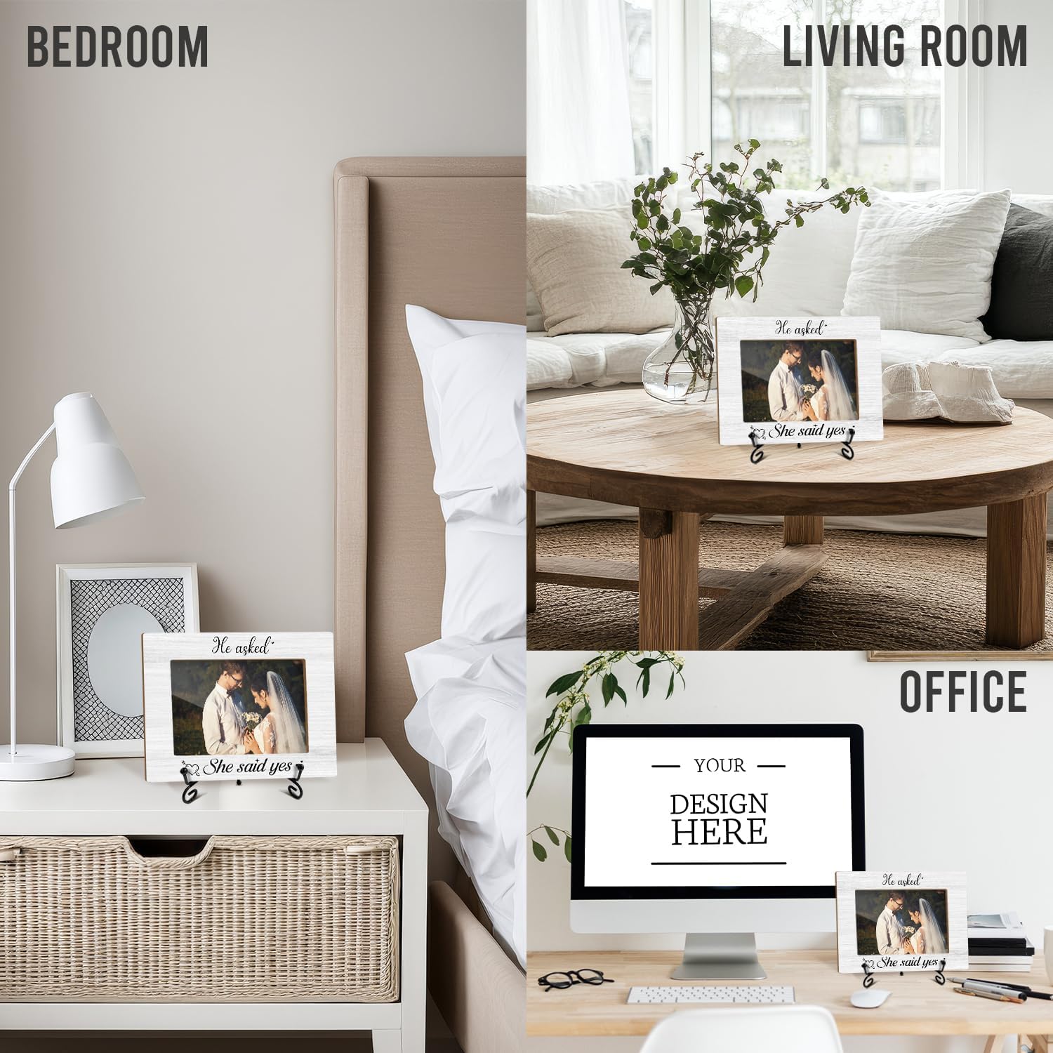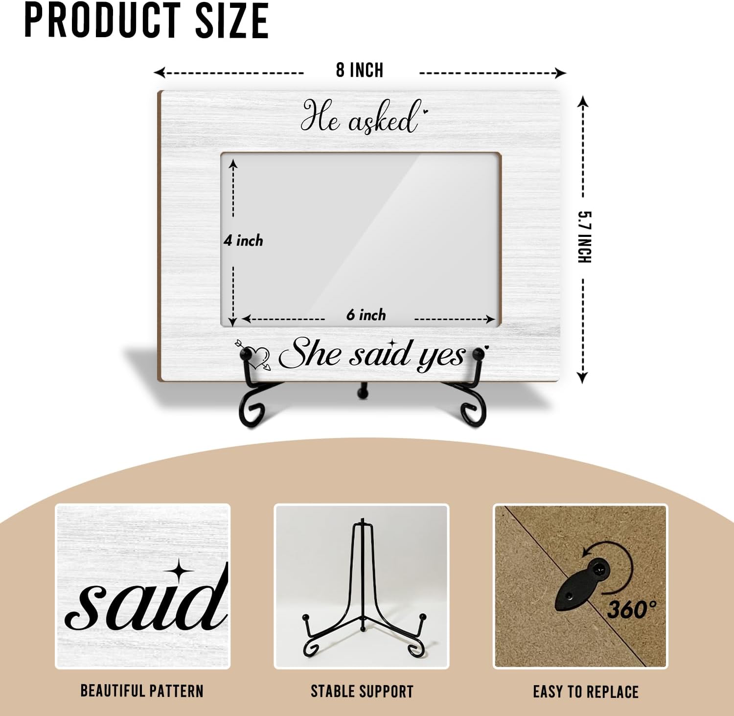 Engagement Picture Frame, He Asked She Said Yes, Wedding Engagement Gifts For Couple Newlyweds Bride Groom, 4x6 Wooden Picture Frame Tabletop Display Home Decor -07