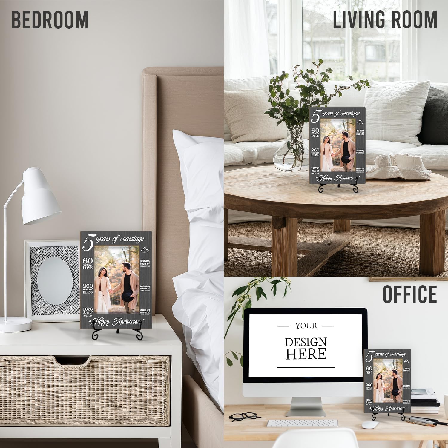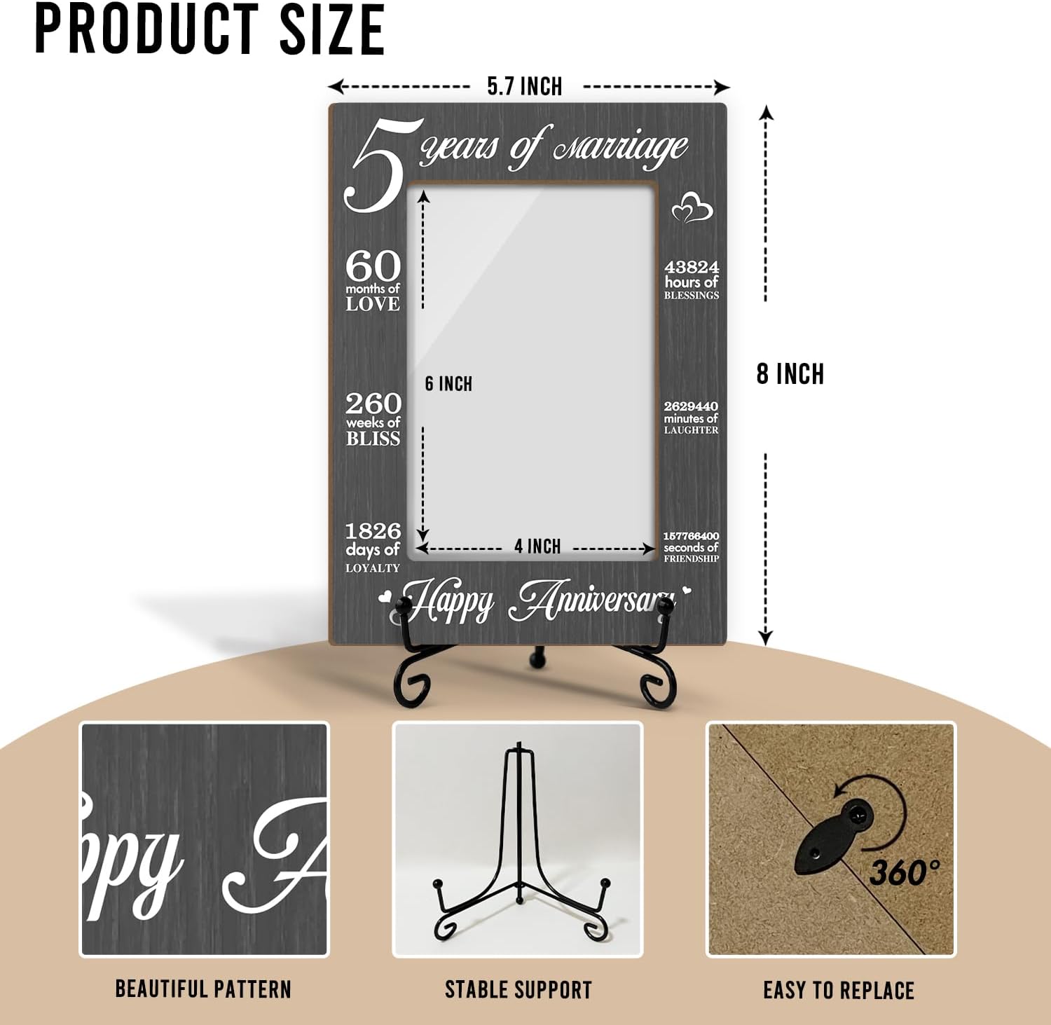 5 Years of Marriage Picture Frame, 5th Anniversary Wedding Valentines Gifts For Couple Husband Wife, 4x6 Wooden Picture Frame Tabletop Display Home Decor -02