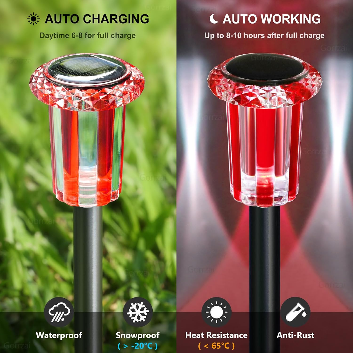 - Enchanting Holiday Light Patterns – Experience the magic of Christmas in your garden! The 6000K cool white LED lights now mingle with colorful festive hues, creating a stunning thorn-like pattern on the ground. Perfect for lighting pathways, driveways, or yards, these solar lights also serve as charming Christmas decorations.