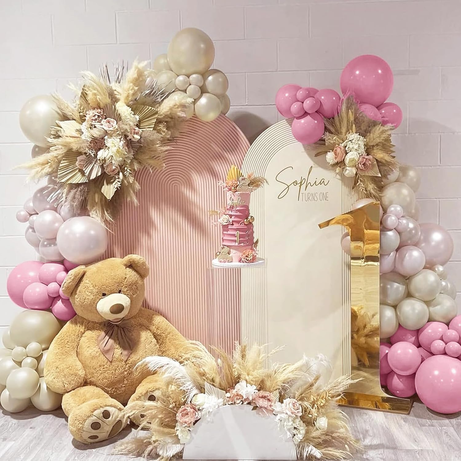 - Versatile Uses: These Double Stuffed retro rose pink, pearl pink, beige, and metallic gold balloon party supplies are perfect for decorating girls' and women's birthday parties, bridal showers, baby showers, weddings, engagement parties, and more.