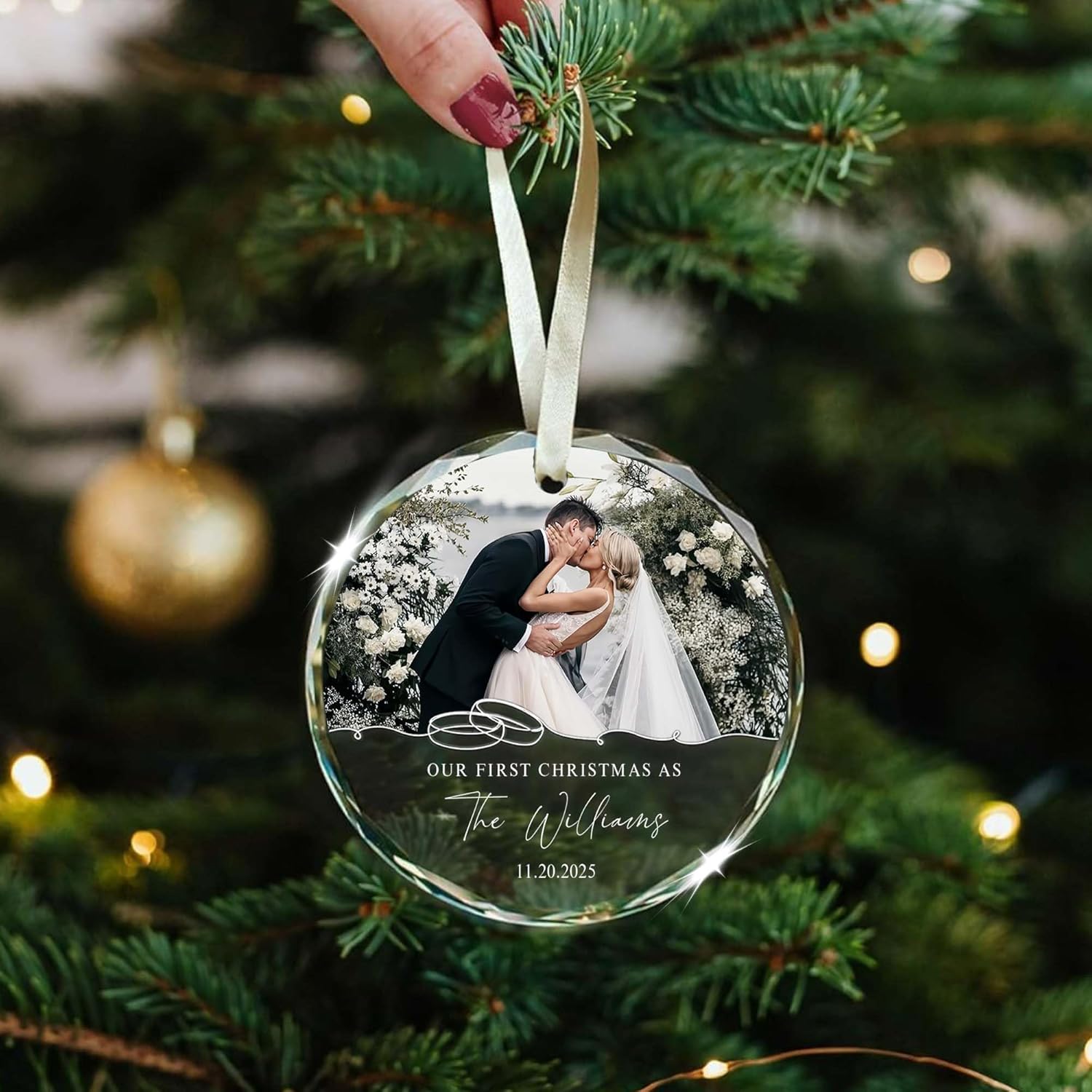 Personalized First Christmas Married Ornament, Custom Photo 1st Christmas Married Ornaments, Just Marry Ornaments Gifts for Newlyweds - Glass Wedding Ornament 2025 Gift for Couple with Box