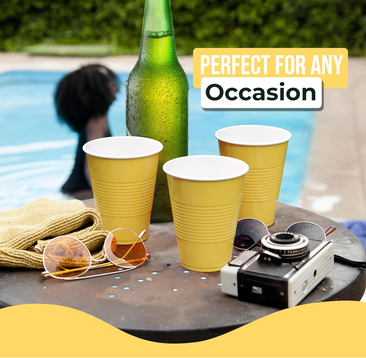 - Disposable: Designed for easy handling and disposal, these yellow plastic disposable cups are perfect for beer pong and other party games, ensuring a fun-filled event. Whether you're serving punch or cocktails, these plastic cups are the ideal choice.