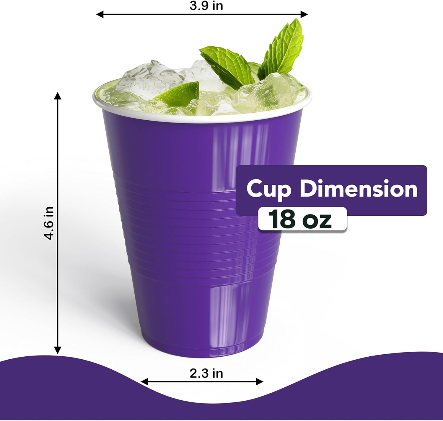 - Quality: We had you in mind when making our purple plastic cups 18 oz. Crafted with sturdy materials, these large plastic cups can withstand heavy drinks, making them ideal for adult parties and celebrations. With colorful plastic cups available, you can add a pop of color to any gathering.